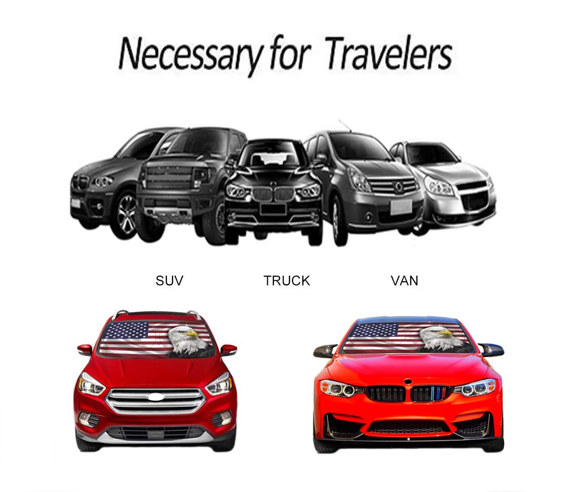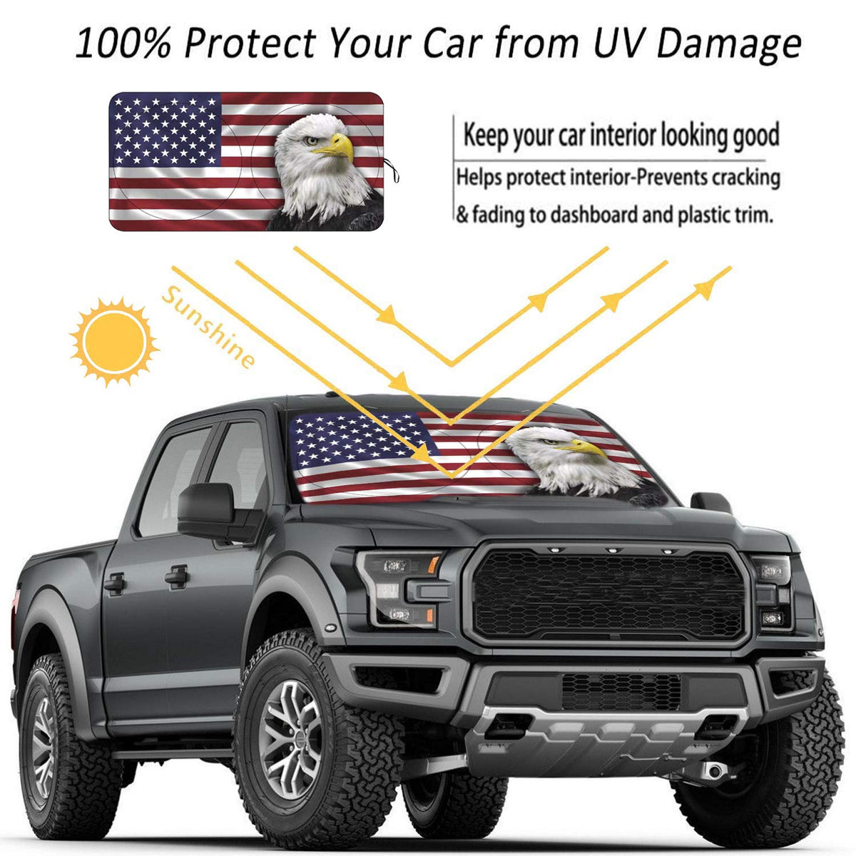 Tdcqqgqq Bald Eagle American Flag Car Windshield Sun Shades, Suv Truck Sun Shade, Uv Protection, 63 L X 33.5'' W