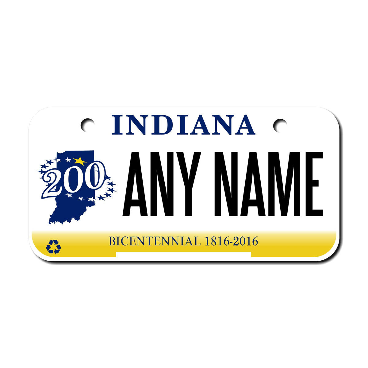 Personalized Indiana License Plates. Offered In 5 Sizes And Key Ring. Make S A Great Gift. Sizes For Bikes, Bicycles, Cars, Trucks,Atv 'S, Wheelchairs, Etc.
