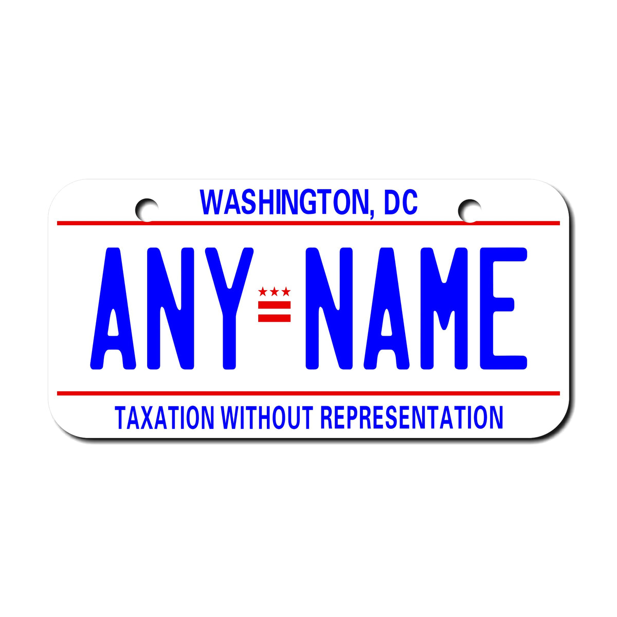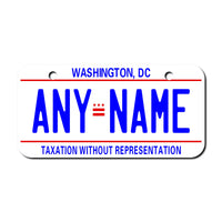 Personalized Washington DC license plates. Offered in 5 sizes and Key Ring. Make s a great gift. Sizes for Bikes, bicycles, cars, trucks,ATV 's, wheelchairs, etc.
