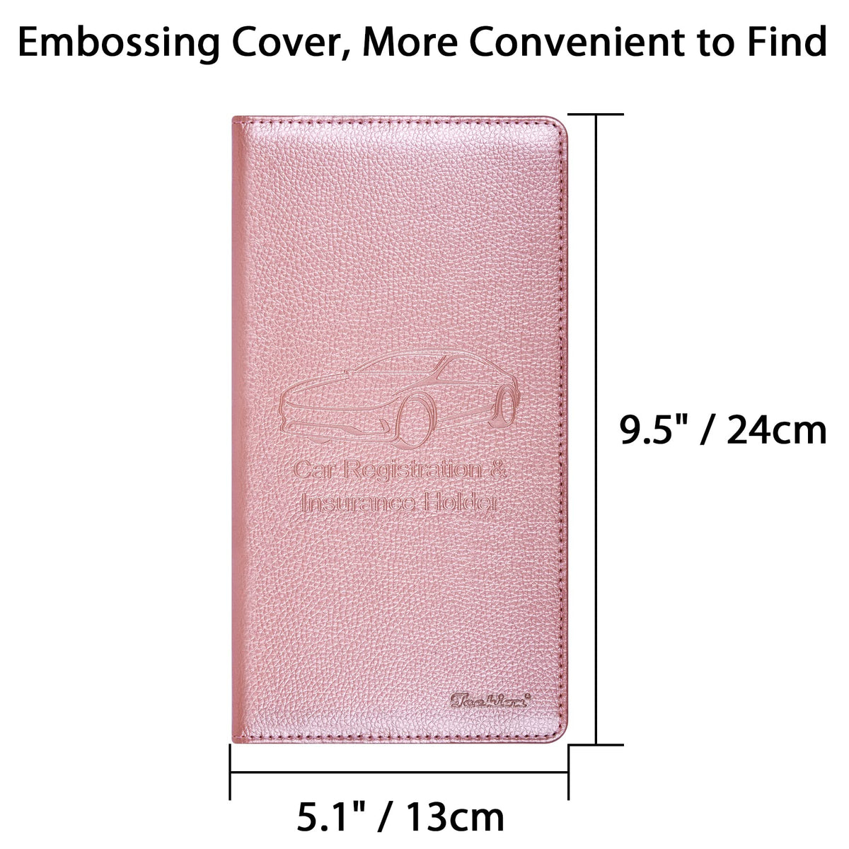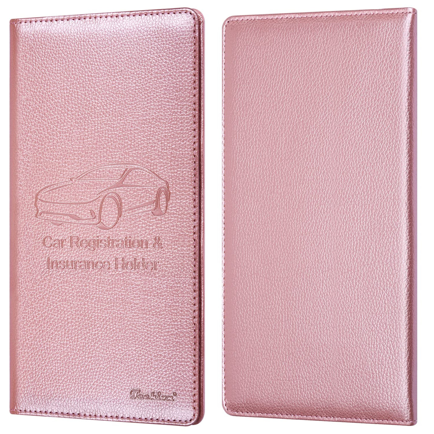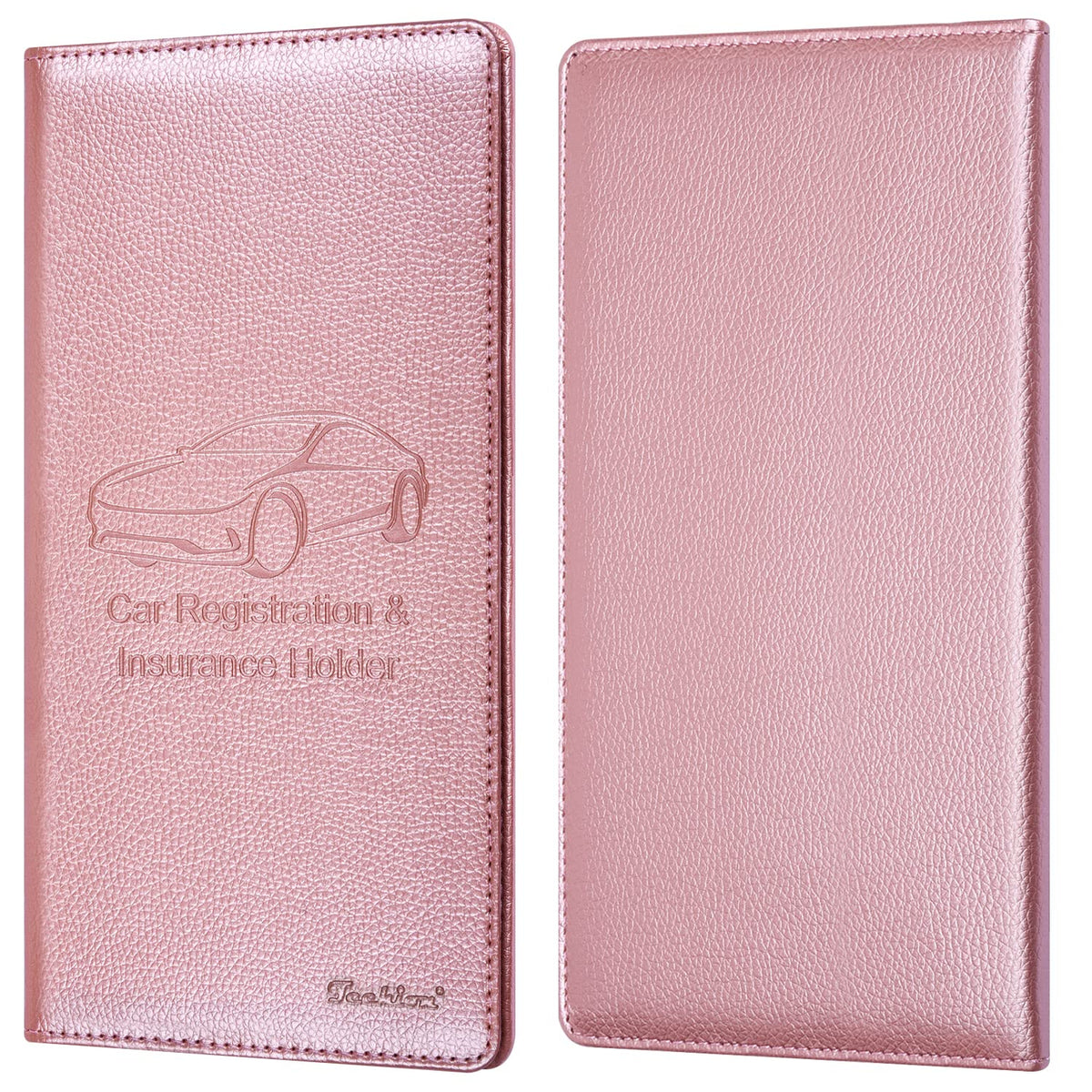 Techion Car Insurance And Registration Holder, 9.5 X 5 Inch Pu Leather Vehicle Glove Box Organizer Wallet Case For Insurance Card, Driver License, Paperwork - Rose Gold