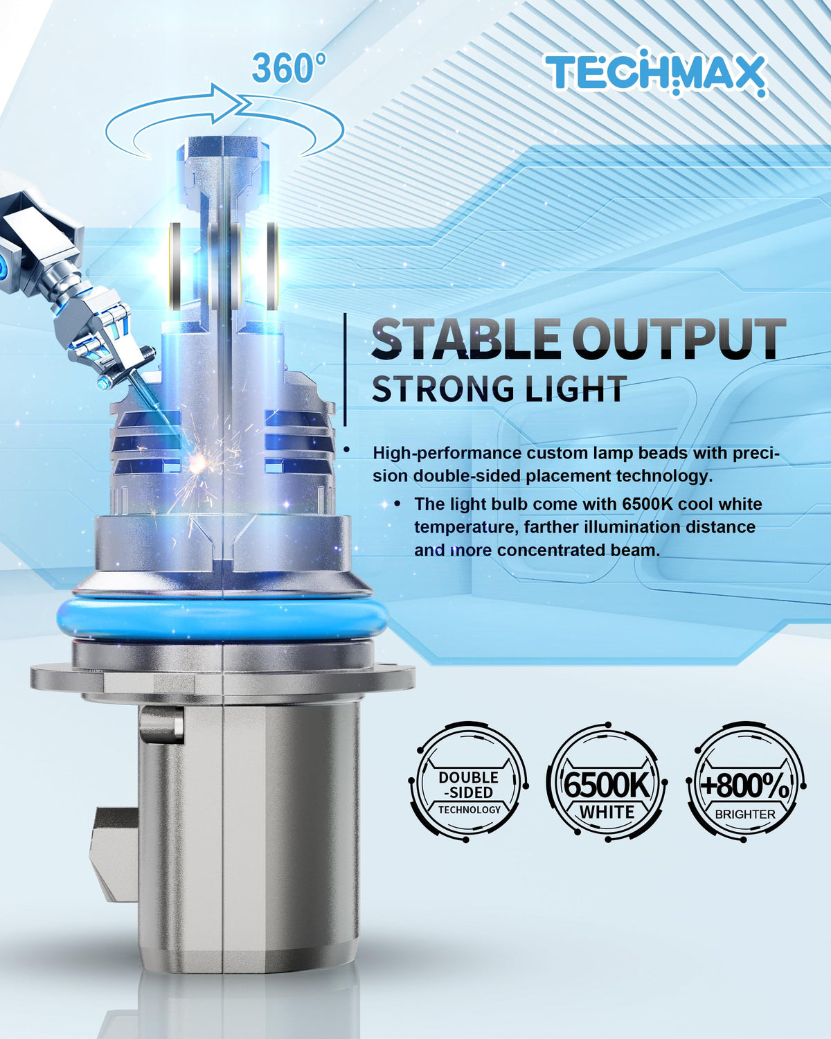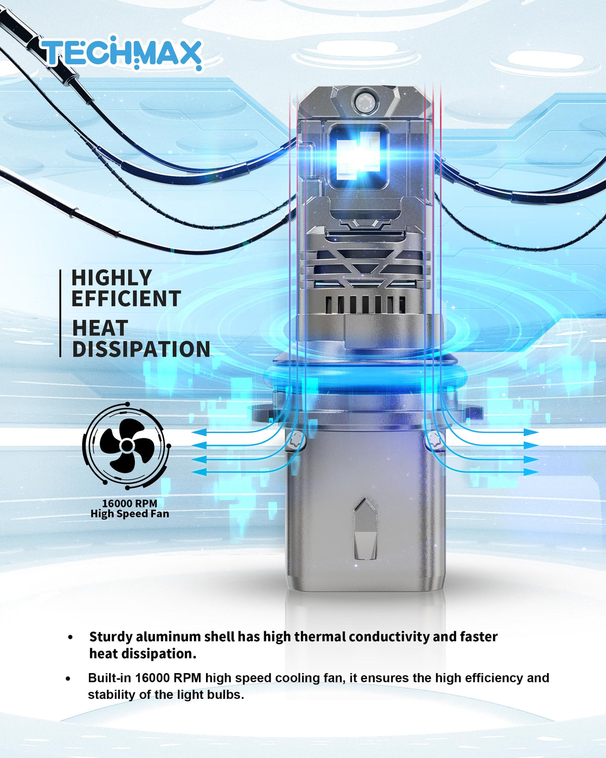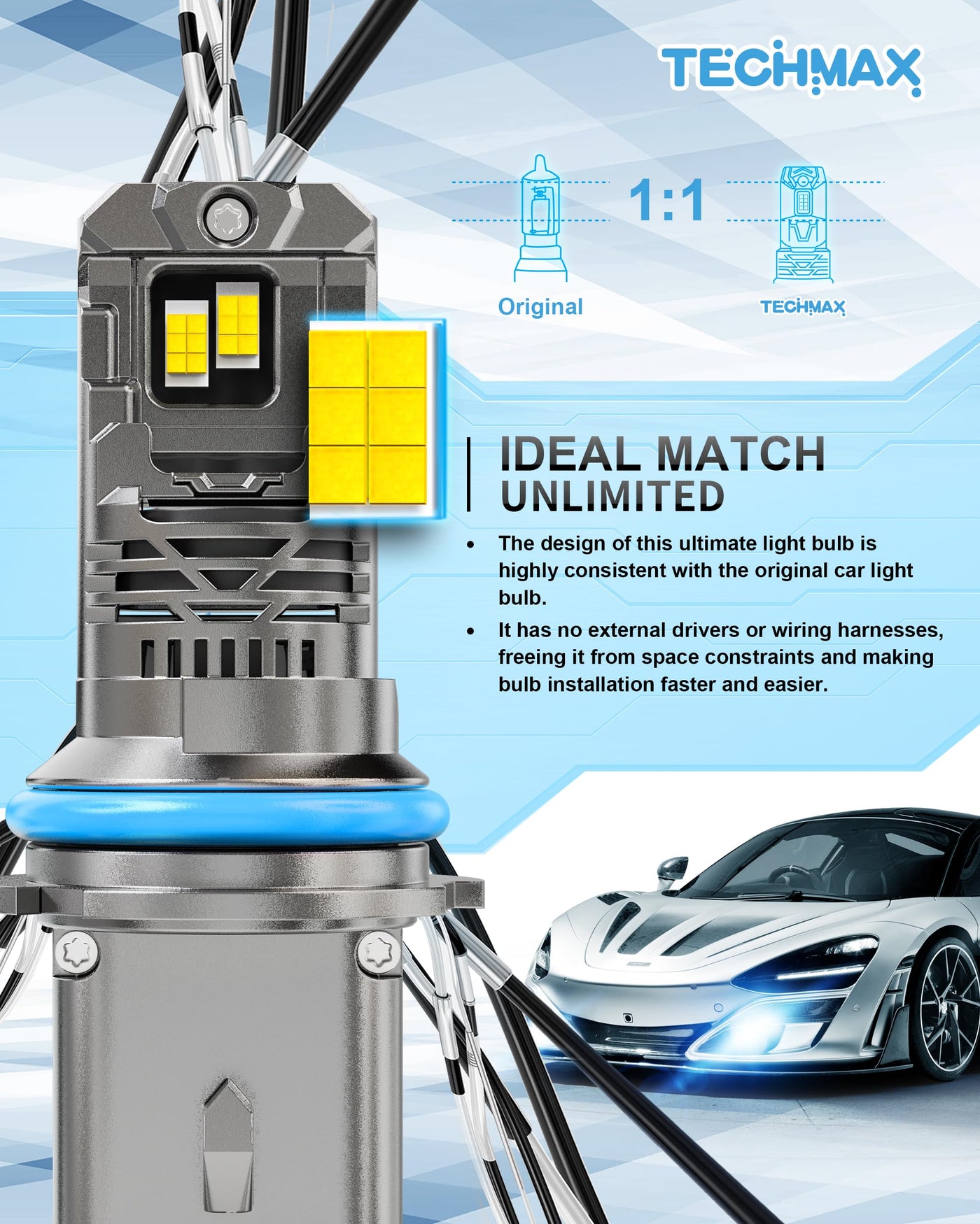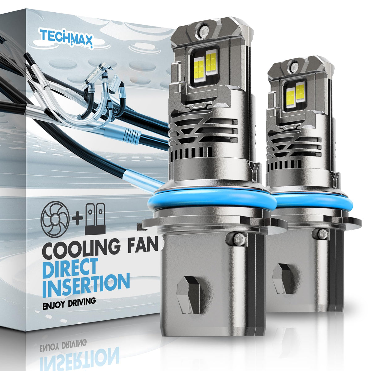 Techmax 9007 Bulbs, 800% Brighter 6500K Xenon White 9007 Fog Light Bulbs With 16000Prm Cooling Fan, Pack Of 2