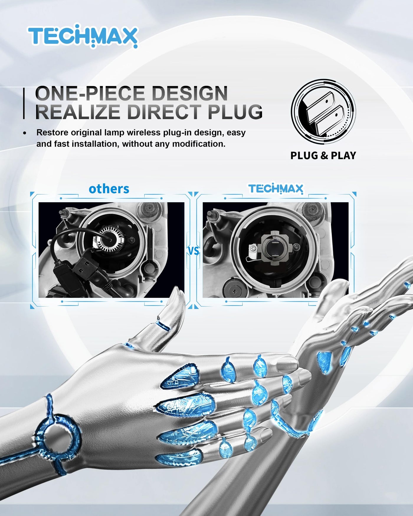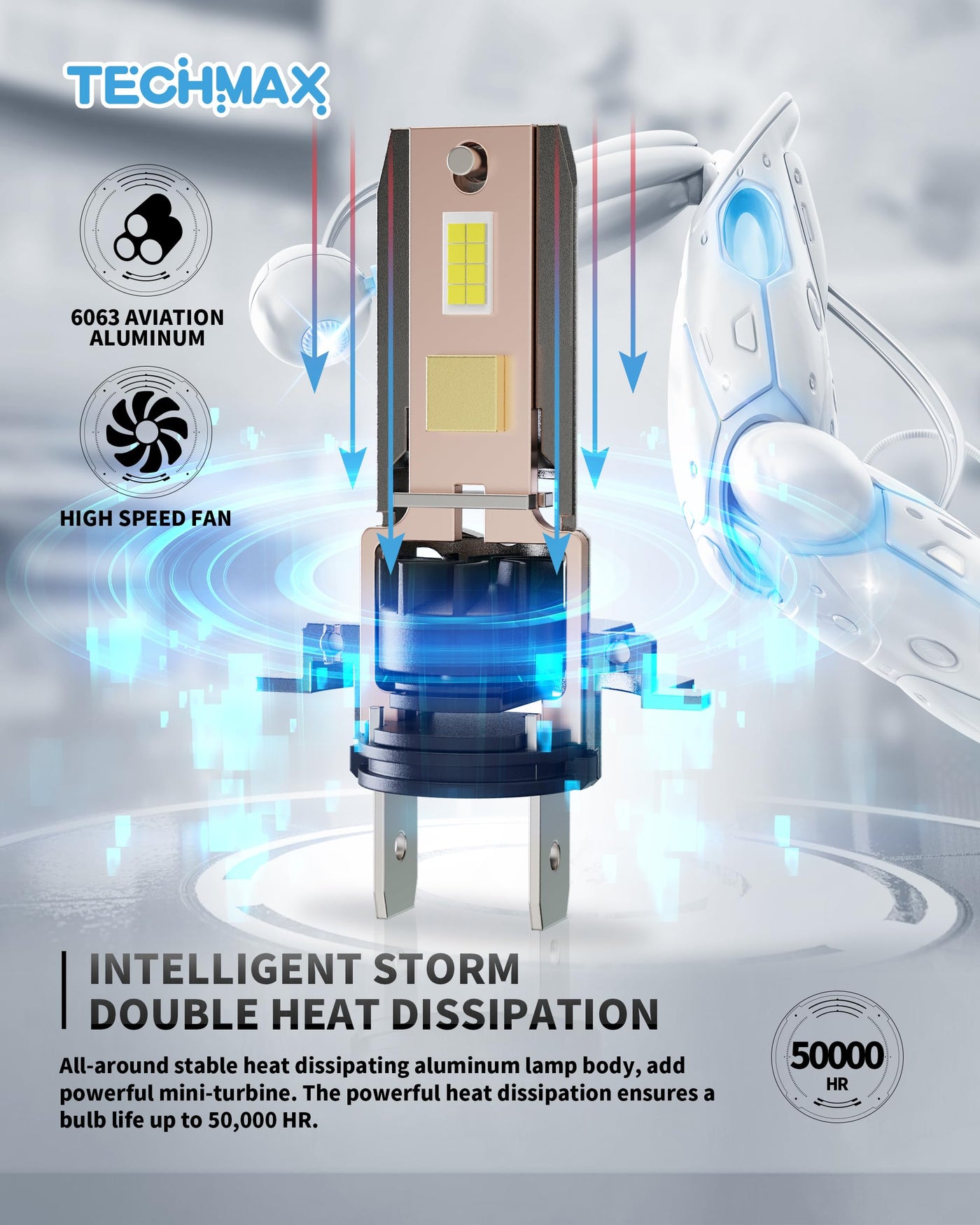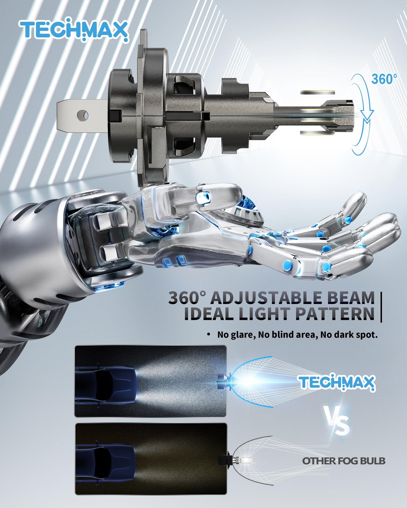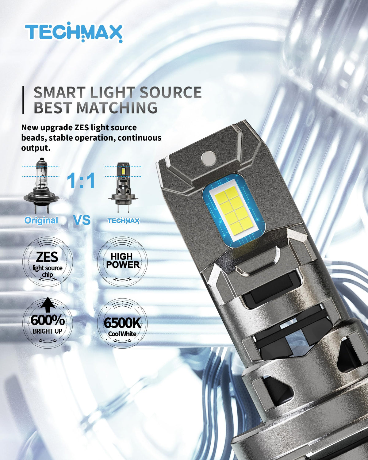 Techmax H7 Bulb, H7 Fog Light Bulb 800% Brightness 6500K White Light No Adapter Required W/Fan Plug And Play 1:1 Small Size Bulb