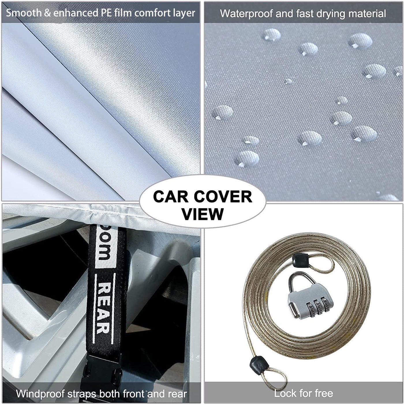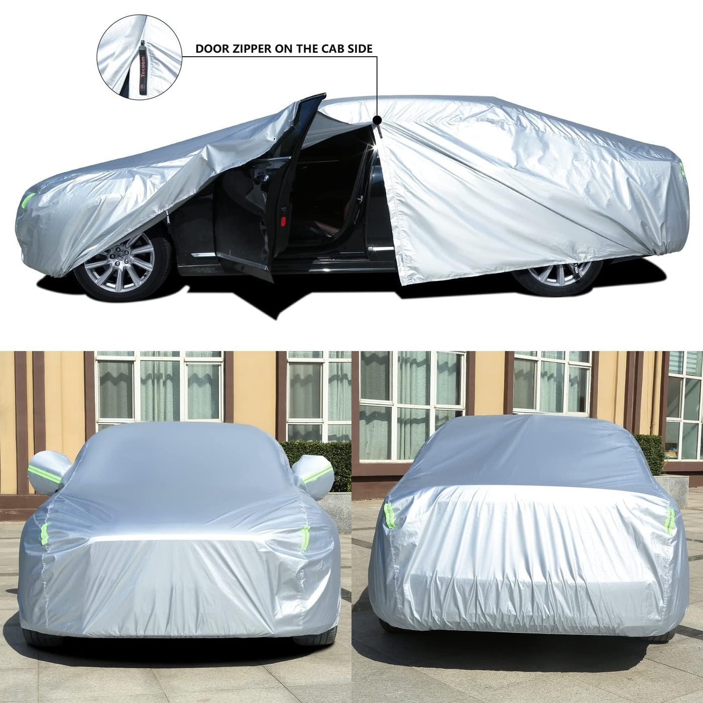 Series: Light Shellmaterial: 190T Polyester Taffetasize:3Xxl+Layer: 3 Layers ======================= Package Include: 1 X Car Cover 1 X Combination Lock 1 X Storage Bag 1 X Antenna Patch ======================= Main Dimensions: 218'L X 78'W X 60'H ======================= Fits All 201-210 Inches Hatchback Like (For Reference): Audi: A8, S7, S8, A7, Rs6 Bmw: 7 Series, 6 Series Chevrolet: Impala, Caprice Ford: Crown, Victoria, Ltd, Elite, Fastback, Five Hundred,Thunderbird Mercedes-Benz: S Class