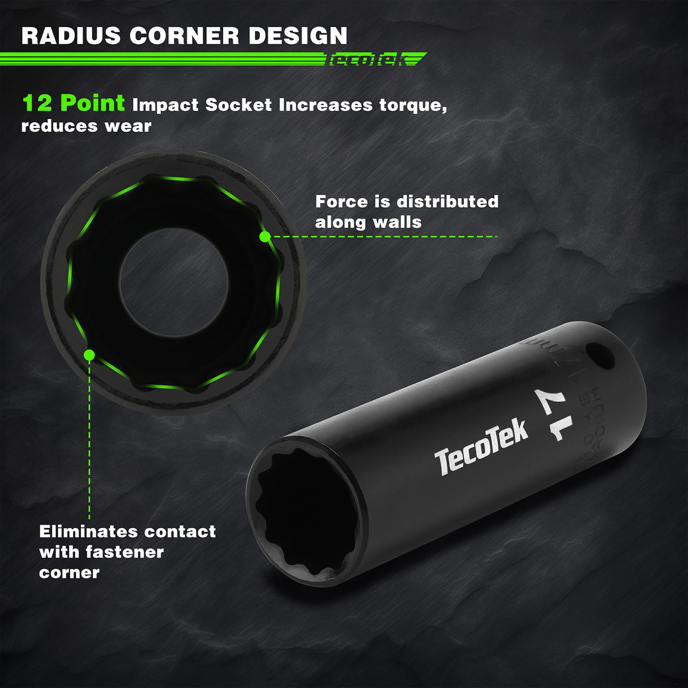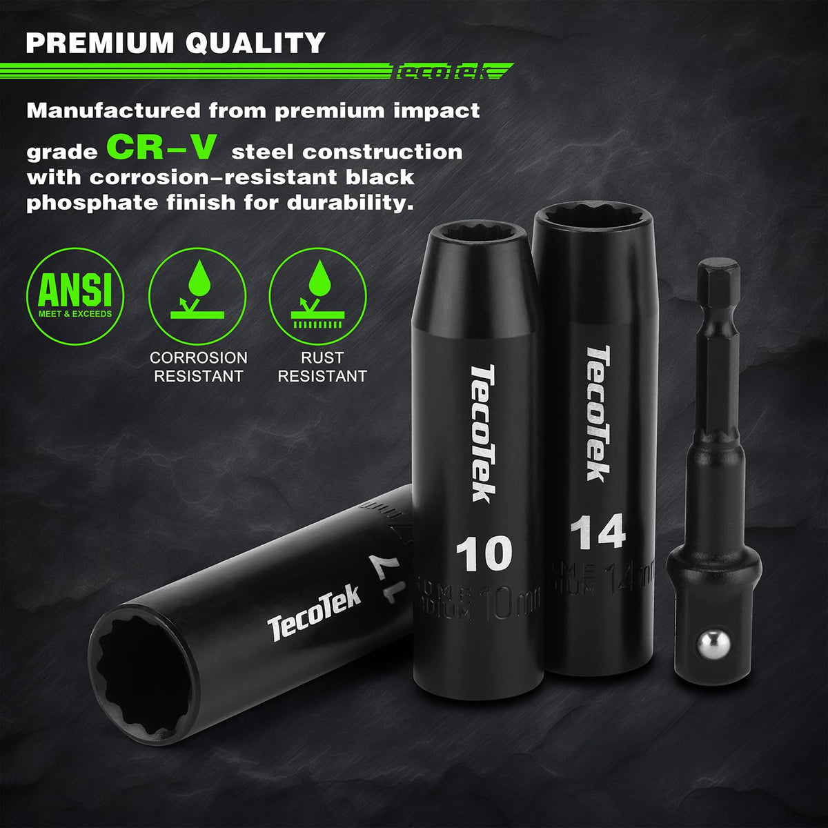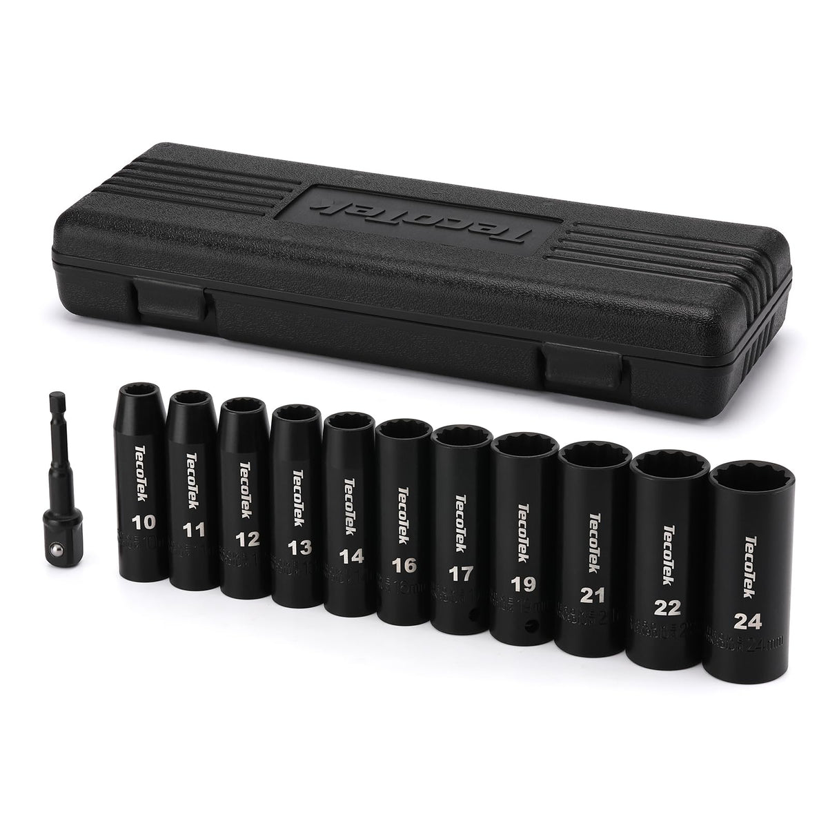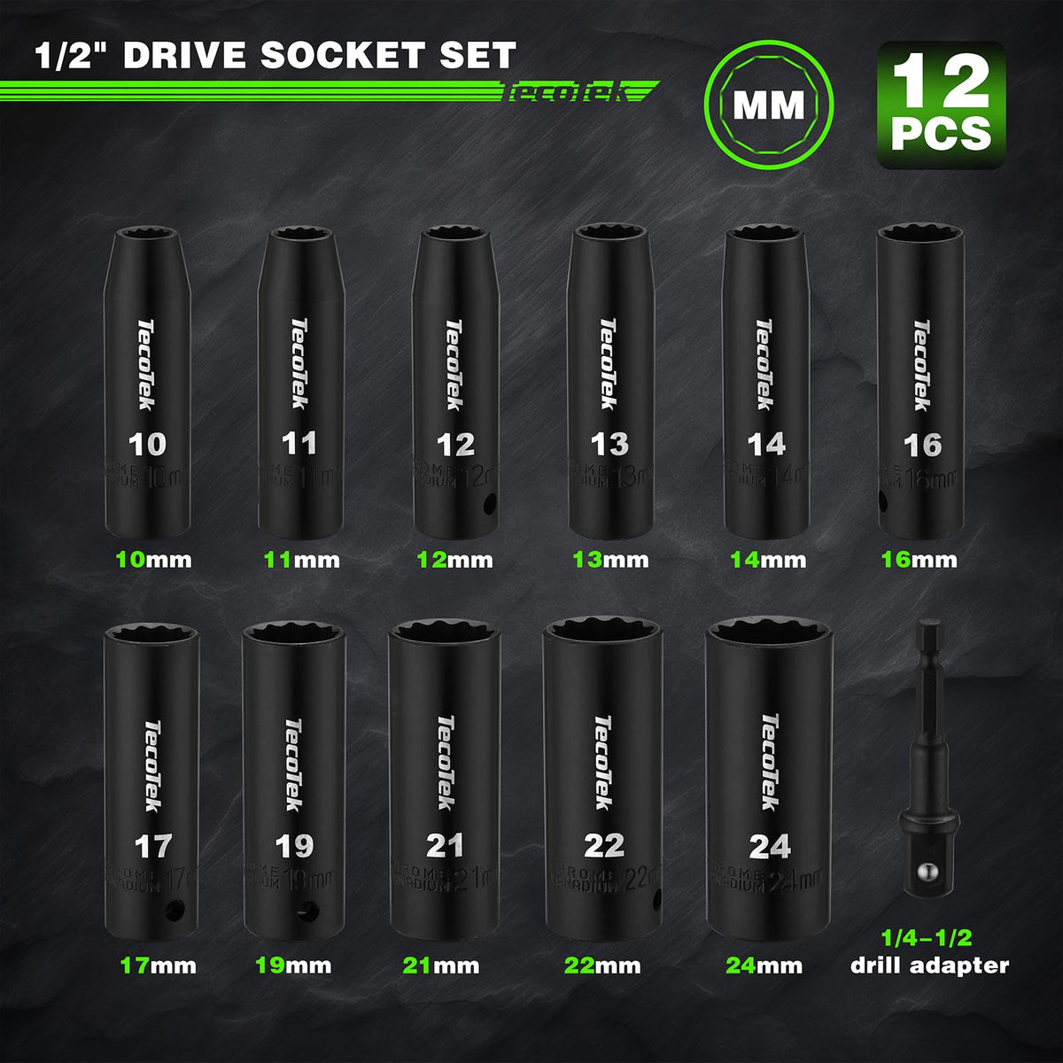 Tecotek 12 Pieces 1/2-Inch Drive Deep 12-Point Metric Impact Socket Set, Cr-V, 10Mm To 24Mm, Drill Socket Adapter 1/2'