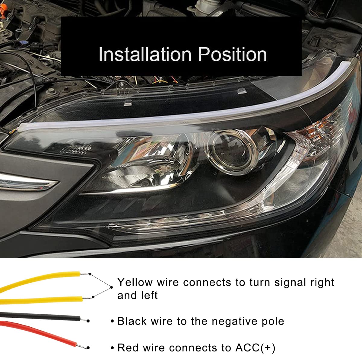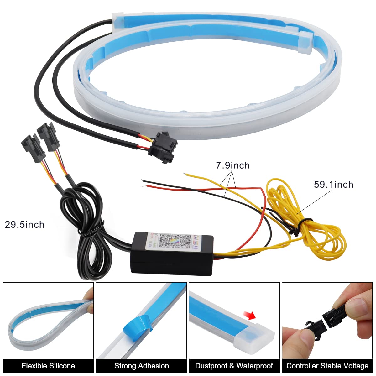 Turn Signal Function: Flexible Led Lights Strip With Turn Signal Function, It Will Switch To The Yellow Light Sequentially When The Car Is Turning. | High Quality Led: Flexible Led Light Strip Pure High Brightness, Import Lights Rgb Multi-Color Core, Quality Assurance, Heat Dissipation Quickly, Lasting Lighting. It Increase The Lighting When You Drive At Night. Improve Your Driving Safety In Rainy Or Foggy Days. | Accent Drl: Built-In Color Chasing Modes Looks Like Recurrently Chasing, Skipping, Dancing, Twinkling On The Strip, Give You An Amazing Visual Experience. If You Don