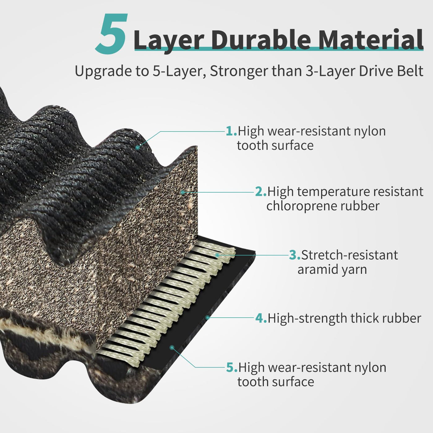Q: What makes the Tektall Drive Belt a high-performance option?A: The Tektall Drive Belt is a high-performance option due to its 0.8" thickness which cushions shocks and reduces slippage. Its precise biting tooth pitch and elastic surface ensure an even stress transmission process, extending the service life and enhancing overall drive efficiency.