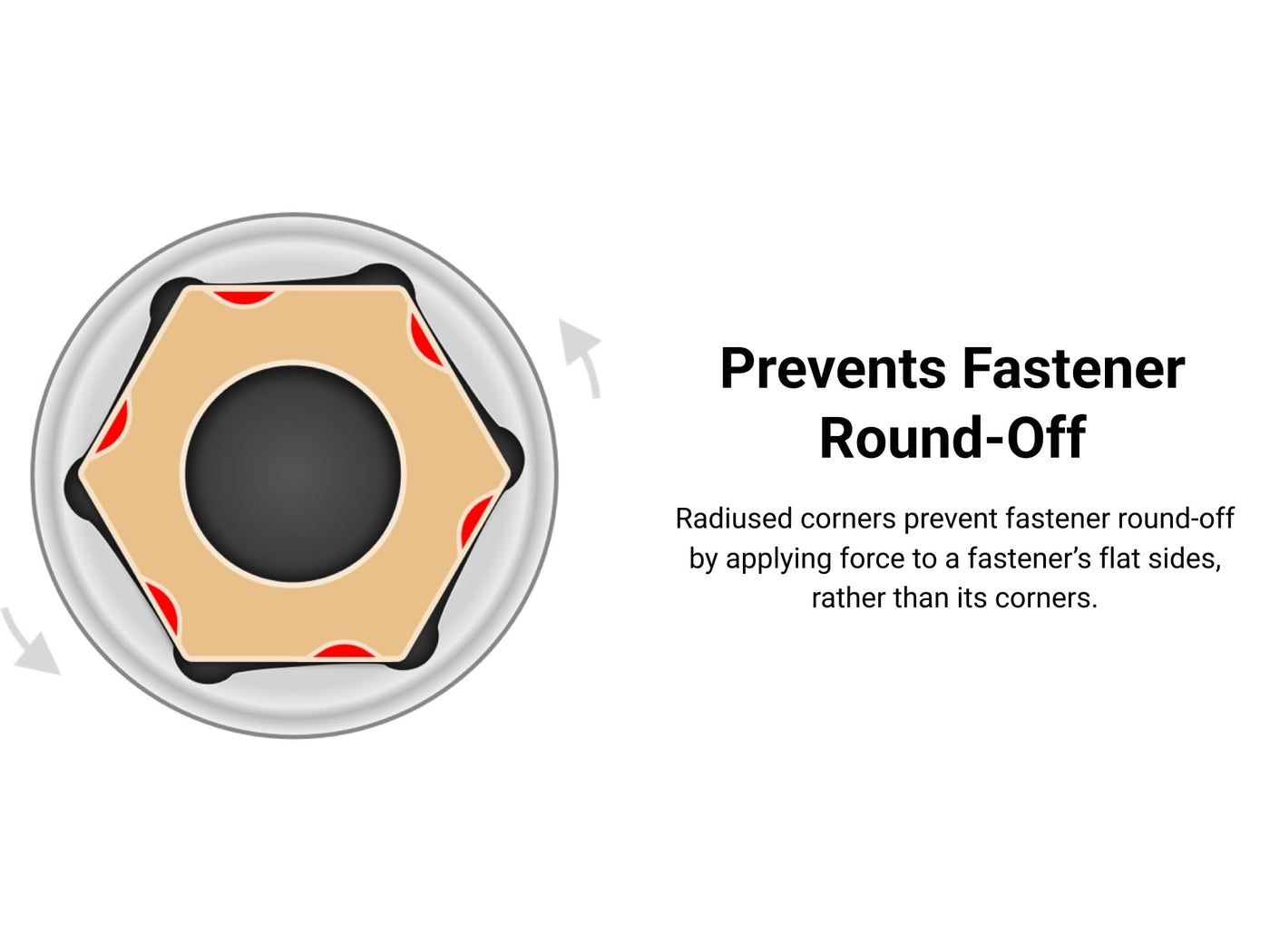 Q: What is the advantage of using a 6-point socket like the TEKTON SHD13009?A: The TEKTON 6-point socket is designed to grip the flat sides of hex-shaped fasteners, providing an exact fit and preventing round-off, which is a common issue with 12-point sockets that grip corners.