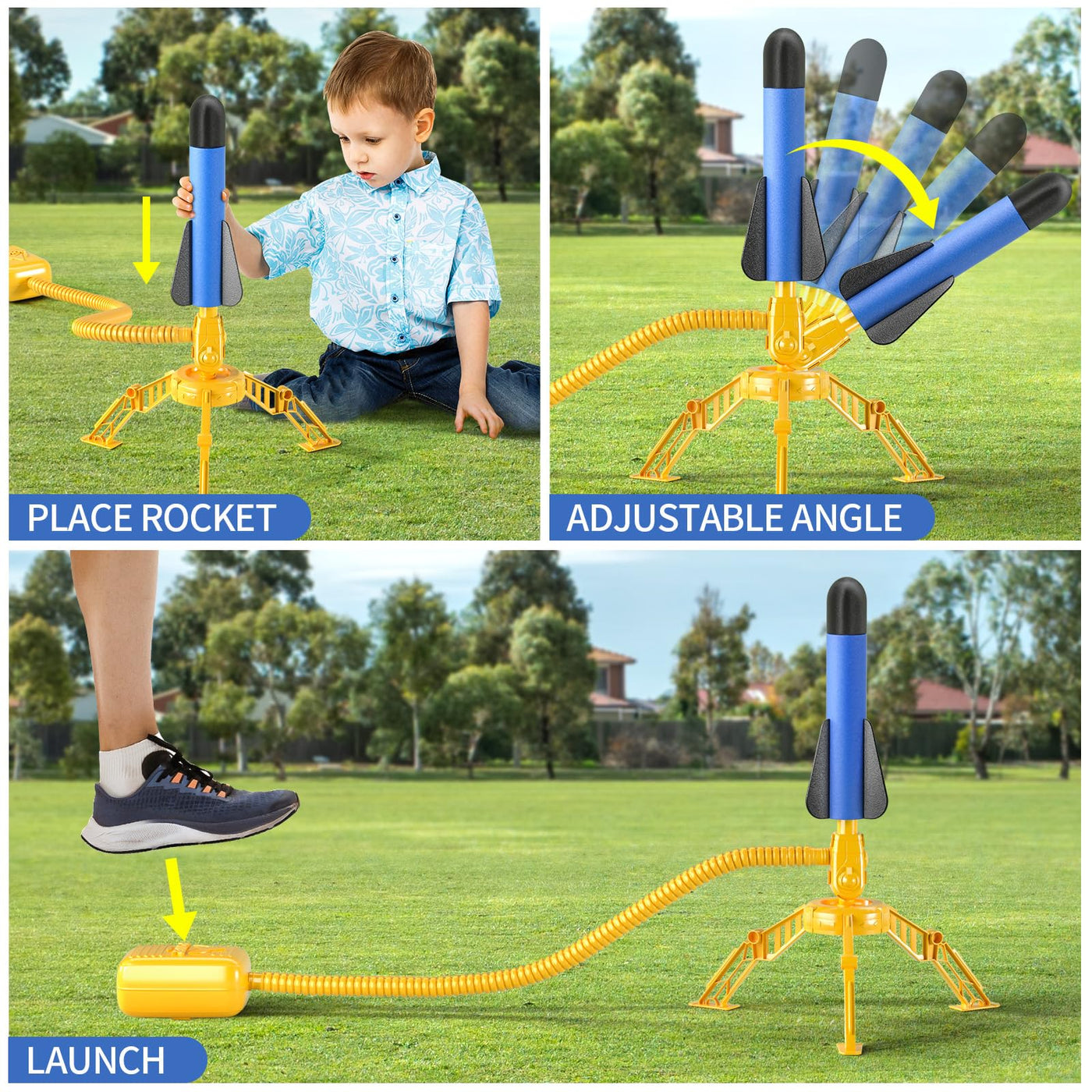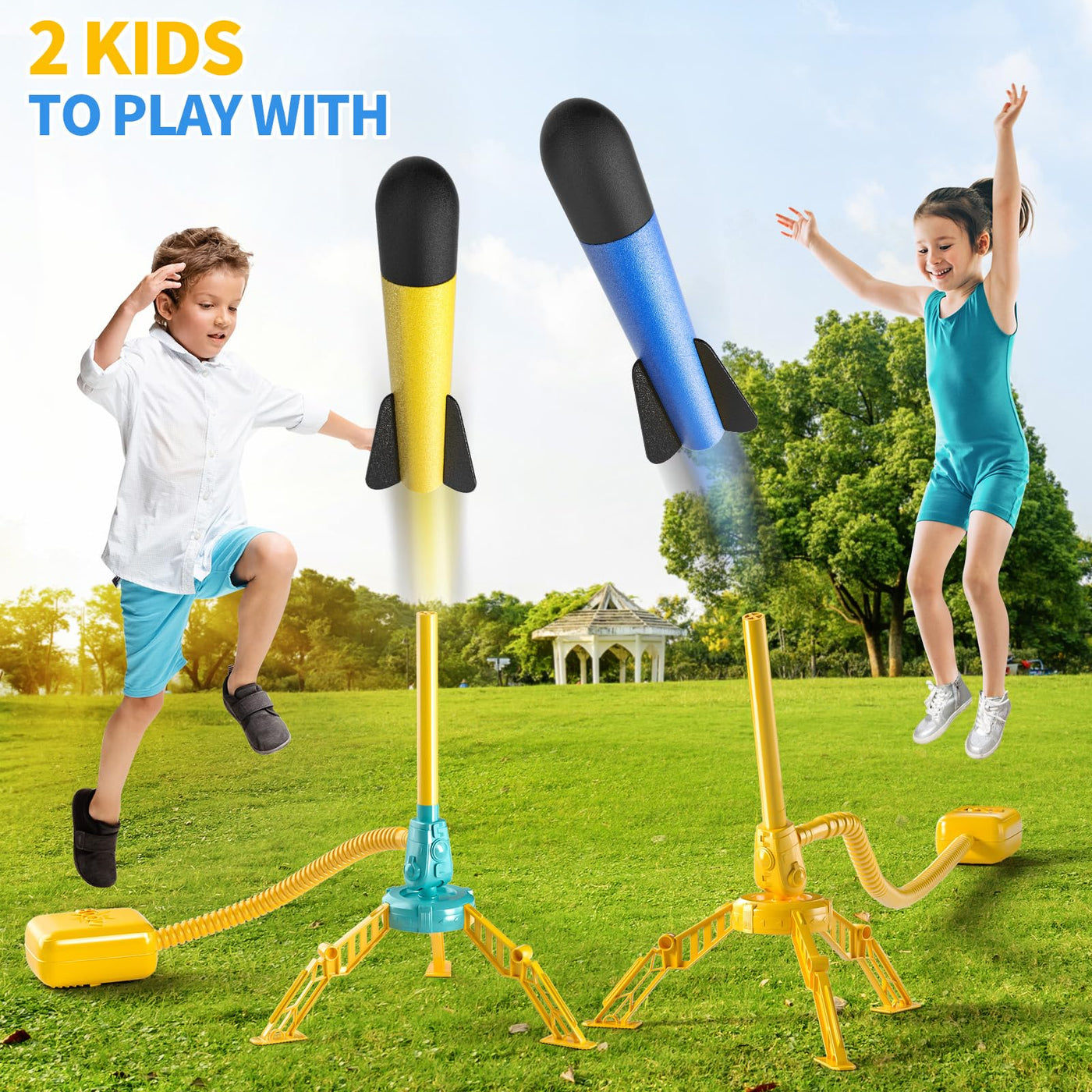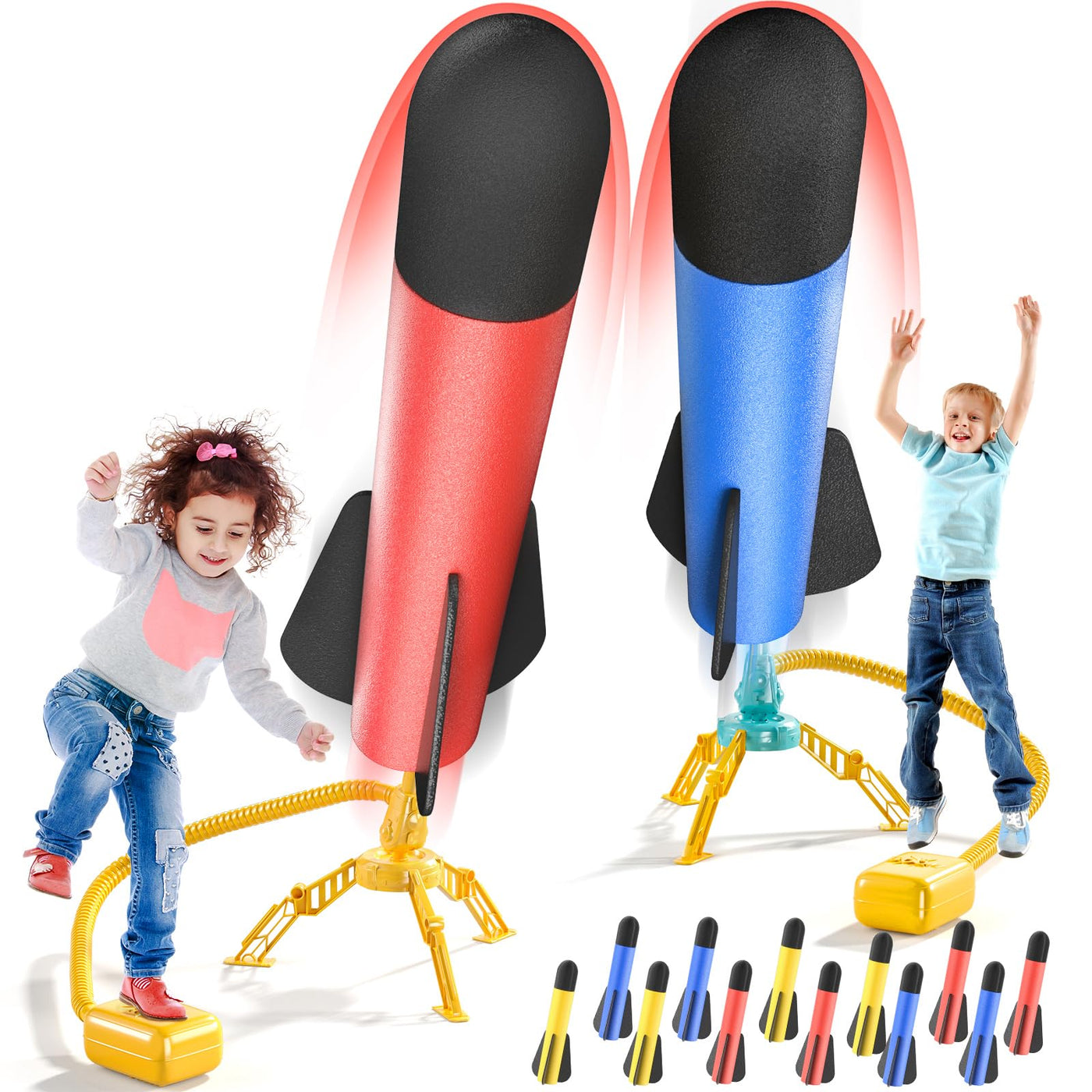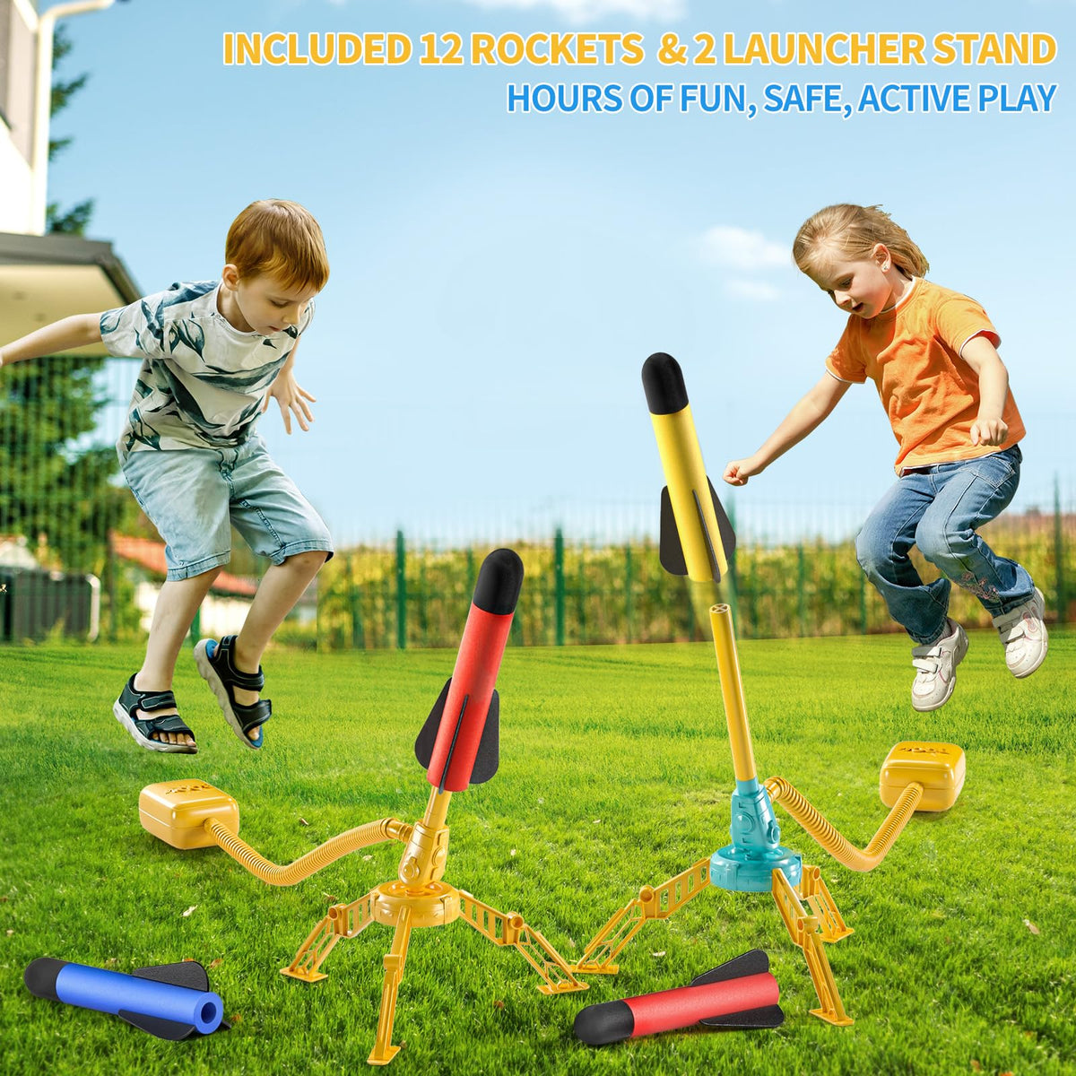 TEMI 2 Pack Rocket Launcher for Kids, 12 Foam Rockets and 2 Launcher Pad, Launch up to 100+ft, Kids Outdoor Toys, Birthday Gift Toys for Kids Boys Girls Age 3 4 5 6 + Years Old