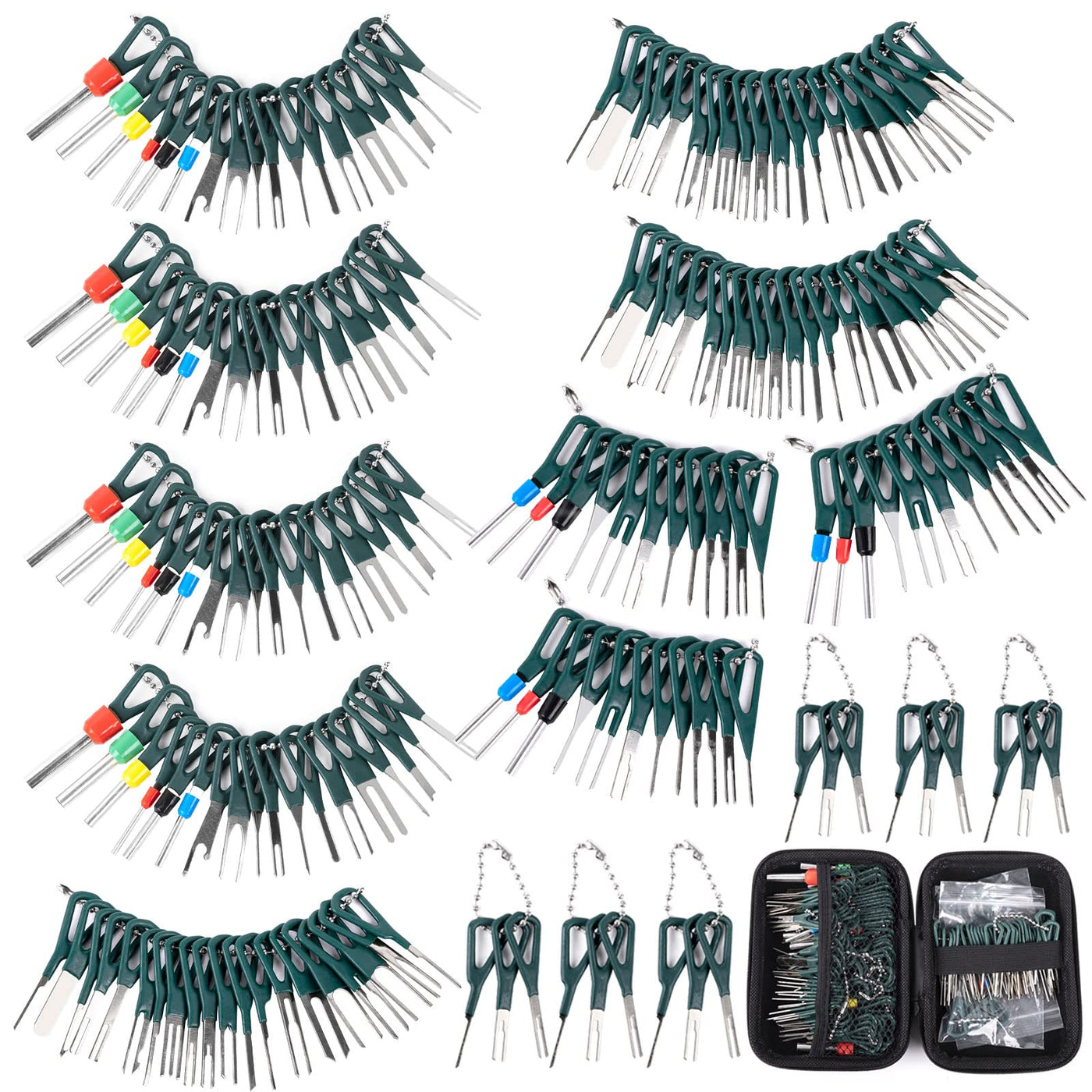 Q: How do I use the terminal pin removal tools effectively?A: To use the terminal pin removal tools, simply push and pull the terminal pins carefully with the extractor tool. Most wire harnesses are secured with barb clips, so use the tool to lift or flatten the barbs before gently pulling out the wire ends.