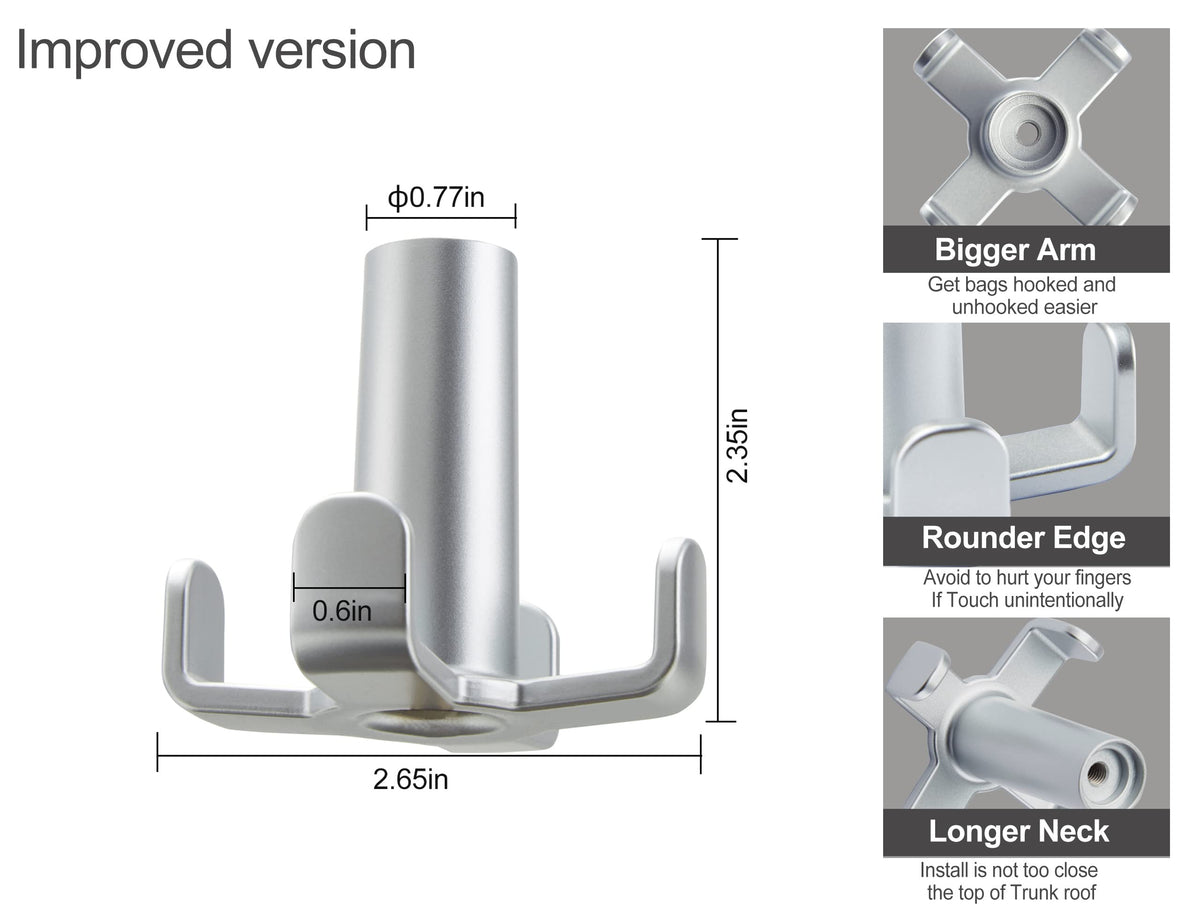 AODITECK Metal Model 3 Trunk Hook Hanger---A Must-Have for Every Tesla Model 3 Owners! It Fits Tesla Model 3 (The Highland Model) 2025 This Aluminum Grocery Bag HOOK Trunk Hook is Simple USE for That Exposed Bolt.It is a Nice Addition to Trunk. Just Screw It onto The Bolt. Keeps Your bags Secure and Your Stuff in Place It is Multifunctional Accessory Which Enables You to Hang Grocery Bags, File Bags, Shopping Bags, Purses, Clothes, Kids Toys, Baby Stuff etc. It Will Keep the Bag from Falling Over and The Files in Order. You Will Get a Tidy Trunk! Spend the extra and get full metal version. There are so many versions of trunk grocery hook on Amazon, However This metal version is superior to the plastic version when placing heavy bags on the hook you can be sure its not going to break.