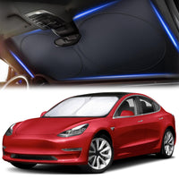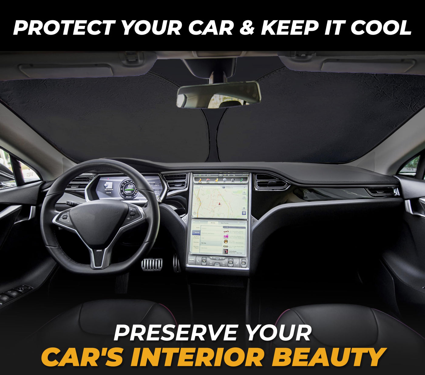 Autovir Tesla Windshield Sunshade offers a tailor-made fit and delivers superior protection against the sun. Our Tesla Model sunshade can offer a snug fit to your Tesla cars. Size Dimensions: Autovir Tesla sunshade delivers a superior finish to Tesla Model 3 and Y. It measures 56 inches in length and 36 inches in height which can encompass your entire windshield! Exquisite 240T Polyester Material: Our Tesla sun shade is made out of a reinforced 240T Material along with the constructed metal frame. It is compatible with Tesla Model 3 sun shade & Tesla Y sunshade windshields! The special 'V' cut delivers end-to-end coverage with ease! Preserves Your Car Interiors: Our tesla car accessories sunshade maintains your car's interior temperature at an optimal level. Your vehicle's seats, dashboards, steering wheel, and other LCD equipment will stay cool and safe from the damaging sun! Comes with a Storage Pouch: Our Tesla accessories can conveniently pop up and fit right into your Tesla cars with ease. Our Tesla Model Y accessories 2022 and Tesla Model 3 accessories 2022 can be folded and stored in the compact pouch with ease! Also, our model 3 sunshade and model y sunshade brings amazing sun protection easily