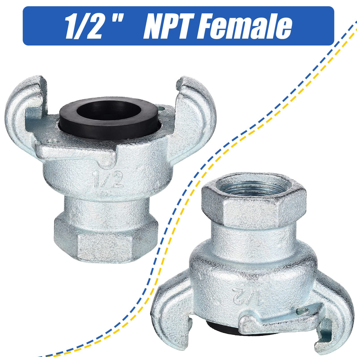 Therwen 4 Sets 1/2 Inch Chicago Air Fittings Npt Iron Air Hose Fitting 2 Lug Universal Coupling For Female And Male End(Female End)