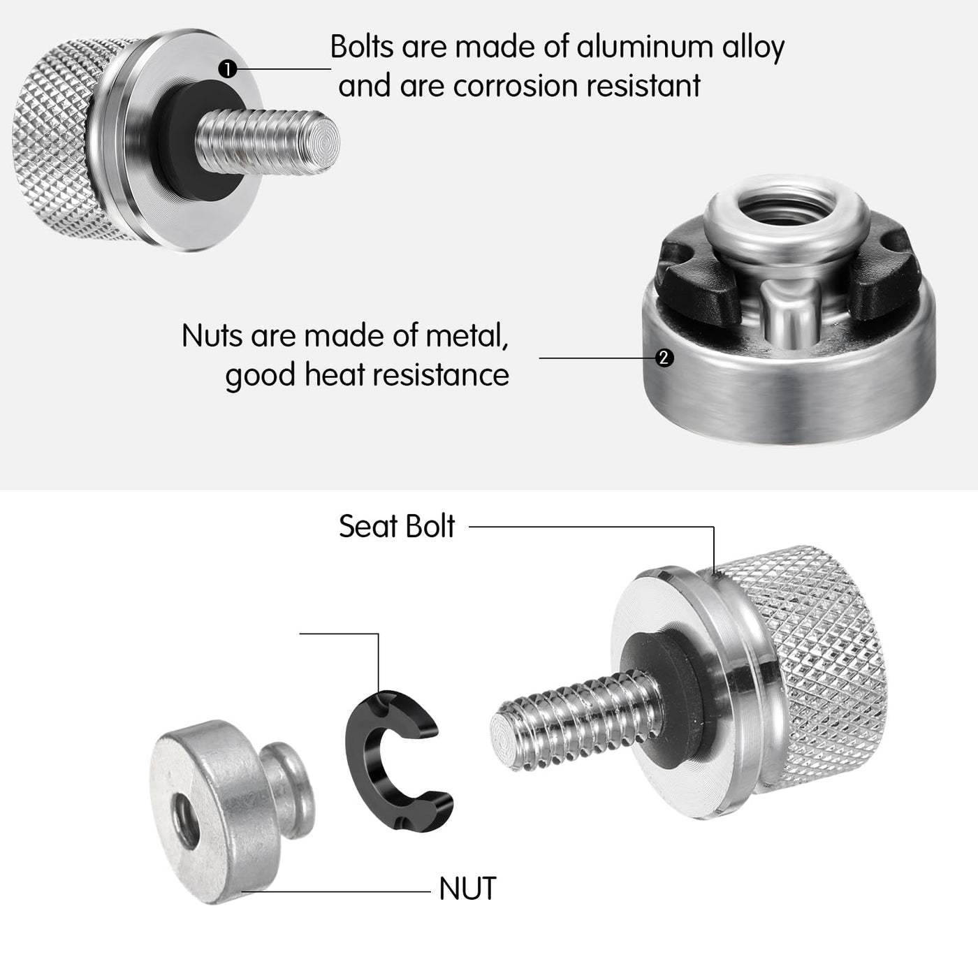 Features: You Can Send The Seat Bolt Screw Nut Mount Kit To Your Father, Boyfriends, Colleagues, Neighbors, Motorcycle Club Members, Motorcycle Partners And Other Motorcyclists, To Make Them Happy And Enhance Your Relationships. Our Seat Mount Nut Kit For Rear Fender Is Lightweight But Solid, The Metal Material Can Withstand Fading And Corrosion. It Blends Well With The Back Seat Of Your Motorcycle. Specifications: Material: Metal And Aluminum Alloy Color: As Picture Shown Size: Fit 1/4'-20 Thread Package Includes: 4 X Seat Bolts 4 X Screw Nuts Notes: Manual Measurement, Please Allow Slight Errors On Size. The Color May Exist A Slight Difference Due To Different Screen Displays. Swallowing Risk May Exist, Please Keep Away From Little Kids. Please Confirm The Fitting Model Before Placing The Order.