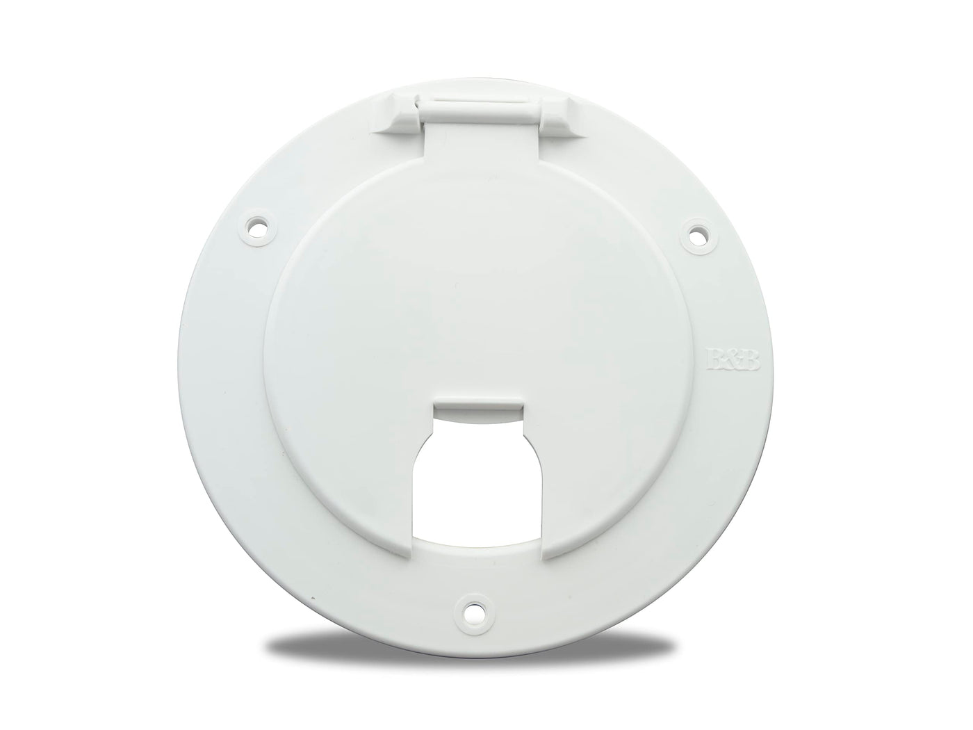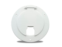 Deluxe Round Electrical Cable Hatch W/O Back Is Made With Quality Non-Yellowing, Uv Stable/Colorfast Materials. Vermin Door Accepts Both 30 And 50 Amp Cord. Replaces Any Round Hatch Up To 4-1/2'.