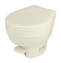 Aqua-Magic Vi Is A Lightweight Rv Toilet With A Space-Saving Design: Allows For The Closest Possible Mounting To The Wall, While The Foot Flush Is Positioned For Minimal Floor Space Interference. Am6 Comes With Improved Mounting Bolt Slots Specifically Designed For Easy Installation. Other Features: - Residential Sized Sloclose™ Seat And Cover - Available In High Or Low Profiles To Fit Your Specific Space Requirements - High Profile Offers Taller Seating Height For Maximum Comfort - Ada Compliant Seat Height (High Profile) - Pressing Pedal Halfway Adds Water, Full Activation Flushes - Provides The Deepest Toilet Bowl Available For Rvs - Includes Water-Saving Hand Sprayer Aqua-Magic Vi Low Profile, Parchment, 31838. Product Dimensions: - Seat Height = 12.94 In (32.8Cm) - Depth = 17.88 In(45.32 Cm() - Width = 15 In (38.02 Cm) - Rough-In = 7.63 In (19.37 Cm) - Weight = 9.2 Lbs (4.17 Kg)