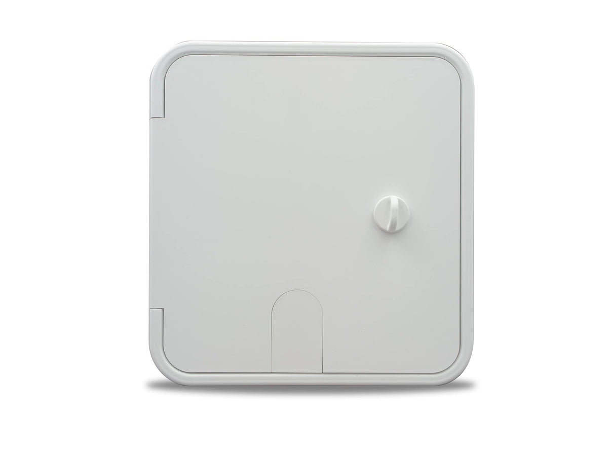 The Thetford 94339 Large 30/50 Amp Electric Cable Hatch Includes An Open Back And Accepts Both 30 And 50 Amp Cord. The Polar White Finish Is Non-Yellowing, Uv Stable/Colorfast, And Paintable. Impact And Road Salt Resistant. Includes Installation Kit. Cutout Dimensions: 6-7/8' H X 6-3/8' W. Outside Dimensions: 8-1/2' H X 8' W. Collar Depth: 1-1/8'. Nsf, Csa And Tei Certified.