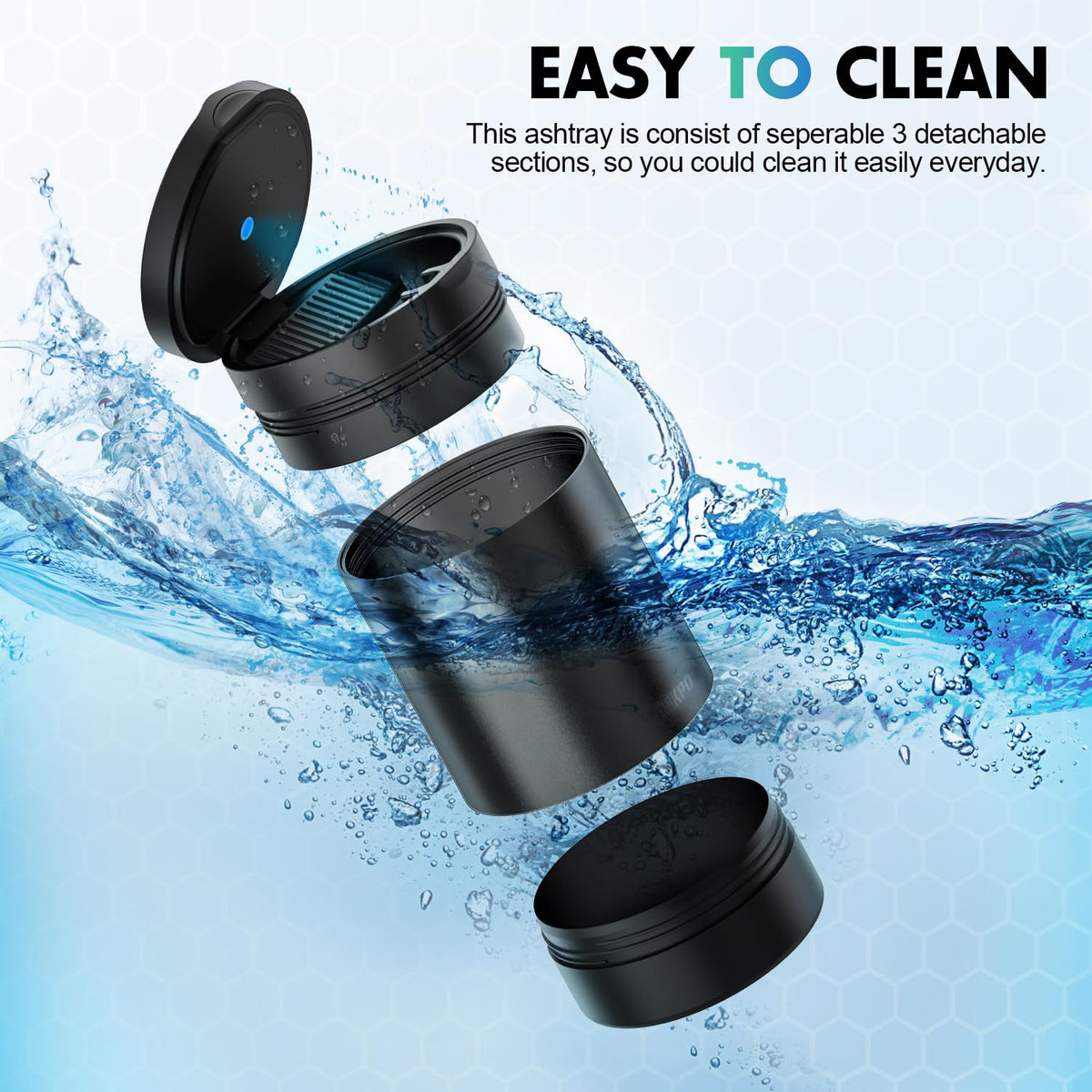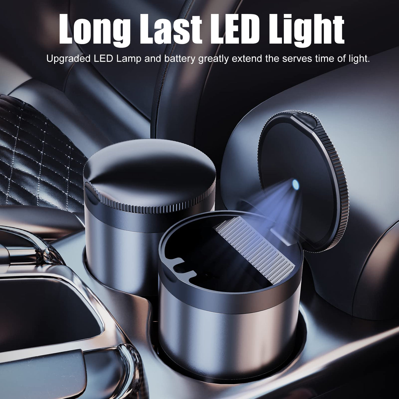 Thikpo Car Ashtray With Lid, Portable Ashtray, Mini Car Trash Can, Detachable Stainless Steel Smokeless Ash Tray With Led Blue L
