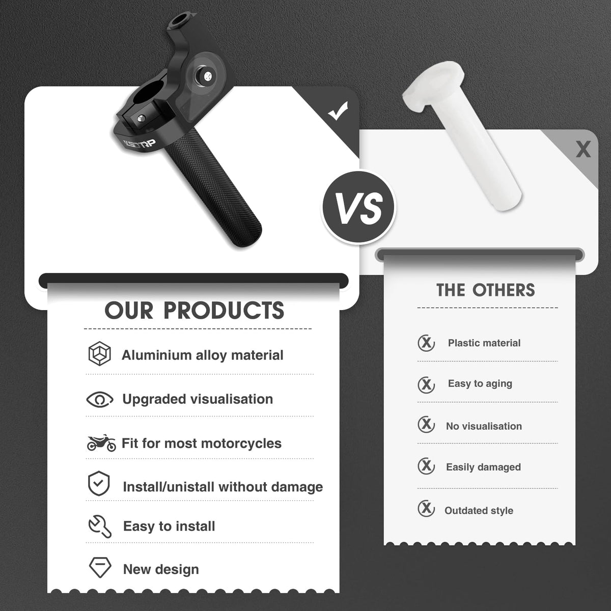 Fitment:Made with 6061 T-6 Aluminum Alloy Ready for abuse Anodized coloration, sharp lookingKnurled grip Ball bearing guide with see-through throttle cable boxAdjustable clamps allows you to mount it with your personal preferences.Fits all pit bikes and minis with 7/8 inch application.Easy to install , No installation instruction .XR50/CRF50 with aftermarket barsPitster Pro - all modelsMotovertSSRSDGRCMThumpstarSikkOGMXtremeKLX110/DRZ110CFR70/100/150and everything else!MotorCycle PRO - We will be the professional one in Motorcycle parts. MotorCycle PRO mainly engages in selling all kinds of high quality Motor parts and new design refitted parts accessories at reasonable price. We will devote to bringing you a comfortable shopping experience every moment. MotorCycle PRO - The more, the better.We will try harder to dig out the satisfying products in the coming days as follows:1. Before packing the goods we send to you, we will check them one by one to make the product quality assured. You can have the higher expectations of quality than normal.2. You will be very professional in your club or with your friends and you will discover a whole new world of the motor bikes/dirt bike/racing motorcycle, please contact us, we will reply and introduce more details to you in the first time. The more questions to us, the happier we will be.3. We will follow more new designs so that you can always obtain the practical parts or accurate model of motorcycle accessories in our shop.