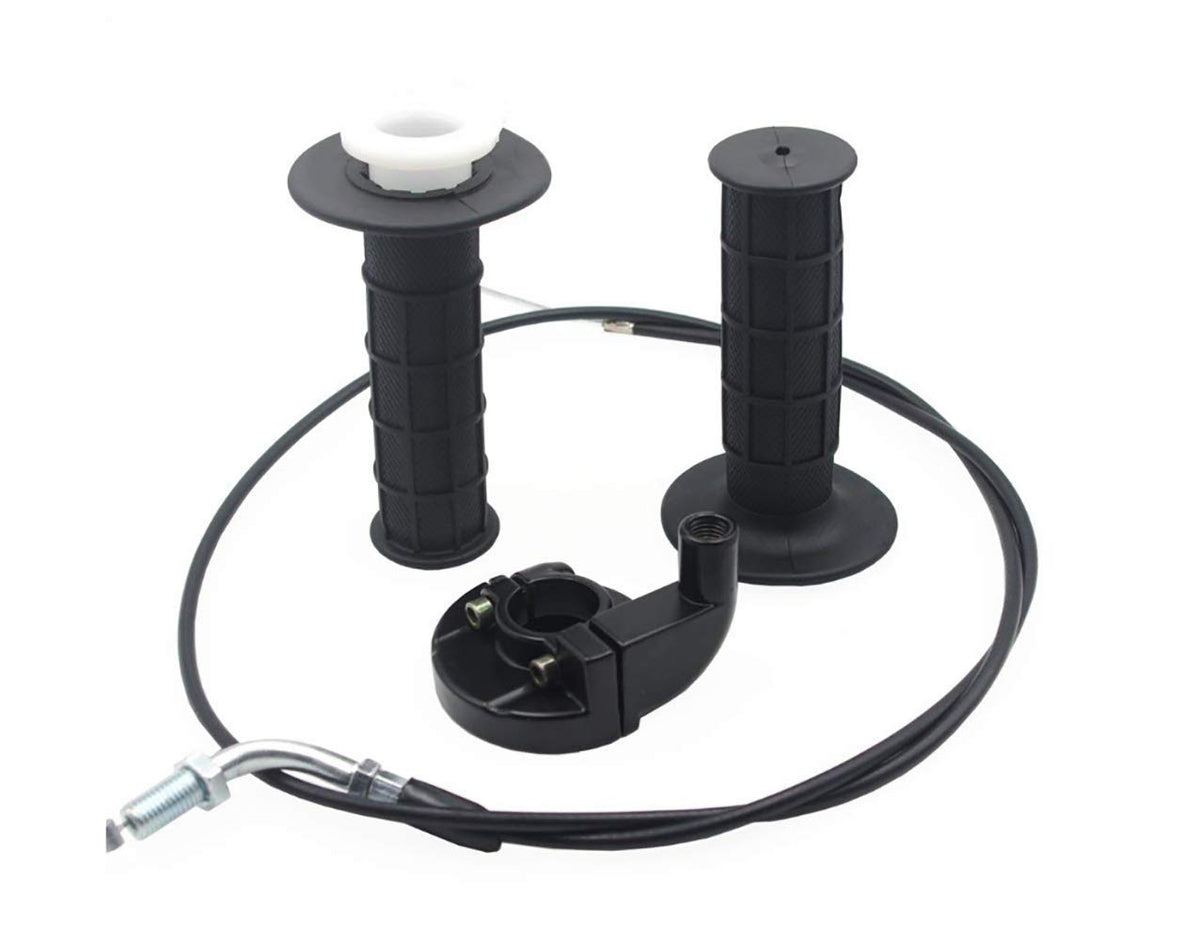 Q: Is this product easy to install on my bike?A: Yes, the Throttle Handle and Grip Cable set is designed for easy installation. It comes with a throttle housing clamp and grips that are ready to fit onto your handlebars, making the setup straightforward for most users.