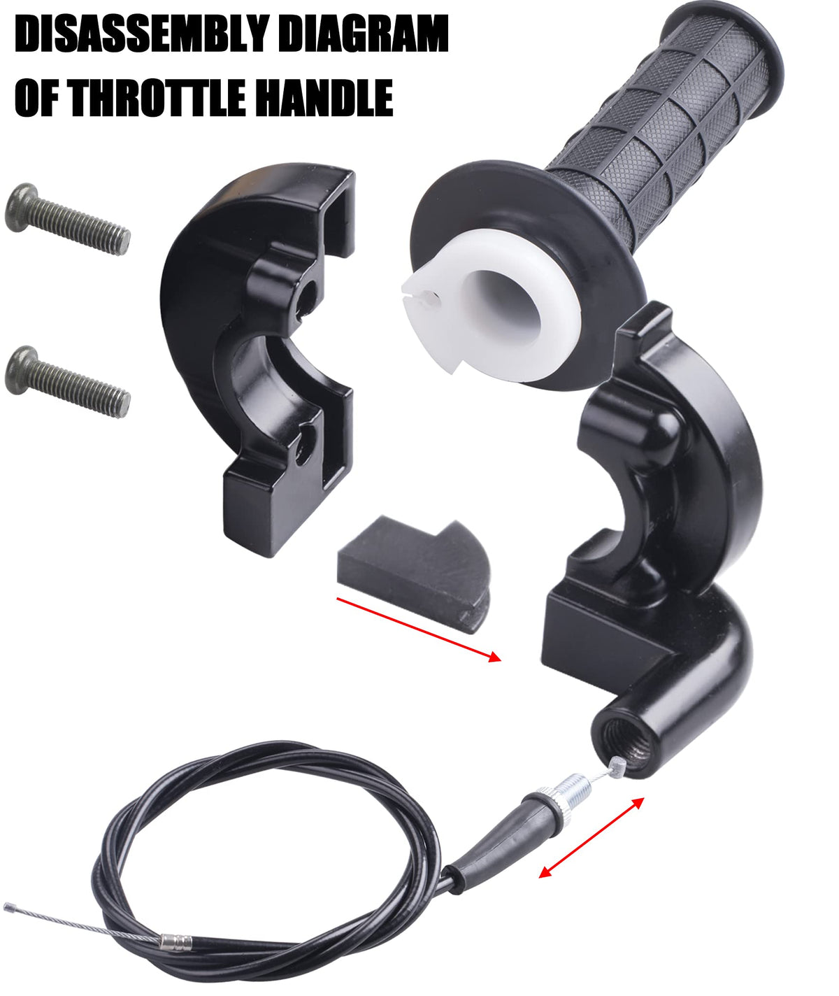Q: Is this product easy to install for beginners?A: Yes, the throttle handle and brake lever kit is designed for easy installation, and it includes all necessary components like the left and right grips, throttle clamp, and cables, making it user-friendly for beginners.