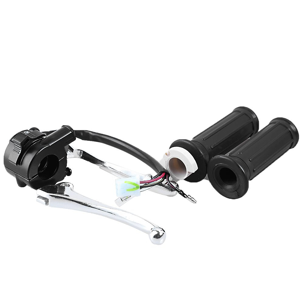 Q: What components are included in the package?A: The package includes one throttle housing switch, one set of brake levers, and one pair of hand grips, providing everything you need for a complete replacement.