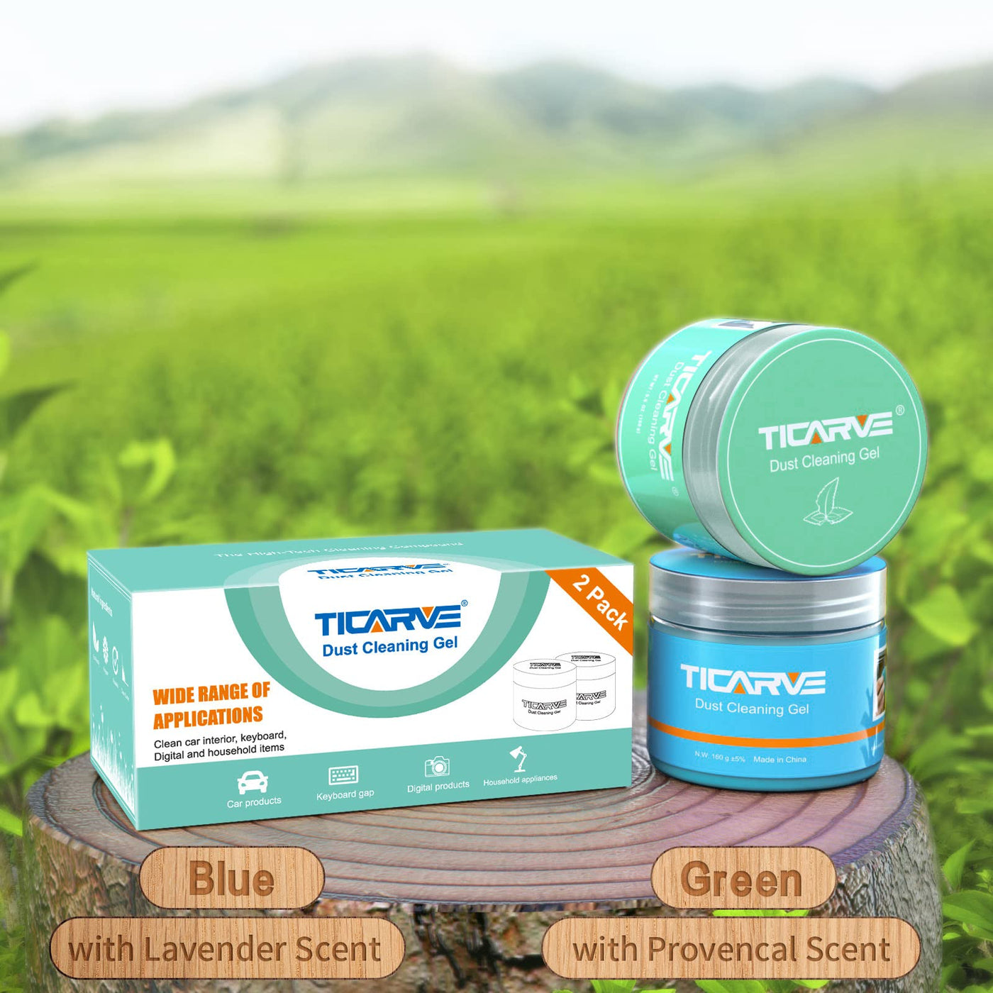 Ticarve Cleaning Gel Is A Perfect Stuff For Your Car And Auto Car Detail Putty Is Easy To Use, Reusable, Handy And Multiple Uses Car Cleaner Is Super Great To Get Into The Nooks And Little Crevices On The Car To Pick Up The Dust, Debris, Hair, Crumbs And So On Car Putty Is Also Helpful To Clean Corners In Office And Household, Absorbs Dust And Dirt From Nooks And Crannies Where Conventional Cleaners Reach Physical Limits Instructions Step 1--Taking Out The Cleaning Gel With Hands, Knead A Few Times Step 2--Press The Detail Putty Slightly Onto The Surface You Need And Then Pull It Up Slowly, The Dust Would Be Carried Away Step 3--After Use, Put It Back In The Jar And Sealed Storage In Cool Place, Reuse It Till The Colour Becomes Darker And Dirty Notice It Is Normal For The Car Putty To Be A Little Wet A Little Bit Of Sticky Is Needed To Pick Up The Dust From The Dirt Surface Areas Car Goop Is Sticky Dust But Not Sticky To Hands And Auto When The Car Puddy Cleaner Colour Darker And Dirty, Replace It With A New One Main Features Auto Interior Cleaner Is Made Of High-Tech Cleaning Material Car Detail Tools Is Special Designed For Pick Up Dust And Hair Putty For Car Is Reusable Reminder Do Not Wash Cleaning Goo With Water Itas A No-Clean Product That Can Be Reused Multiple Times Inedible Keyboard Cleaner, Keep The Car Slime Away From Children Keep The Car Cleaner Away From High Temperature And Direct Sunlight Dust Cleaner Is Suitable For All Devices And Surfaces (Except Carpets) Specifications Package: 2 Jars Cleaning Gel Colour: Green With Provencal Scent, Blue With Lavender Scent Size : 275 X 275 X 25 Inches Nt Wt: 56 Oz (160G) X 2