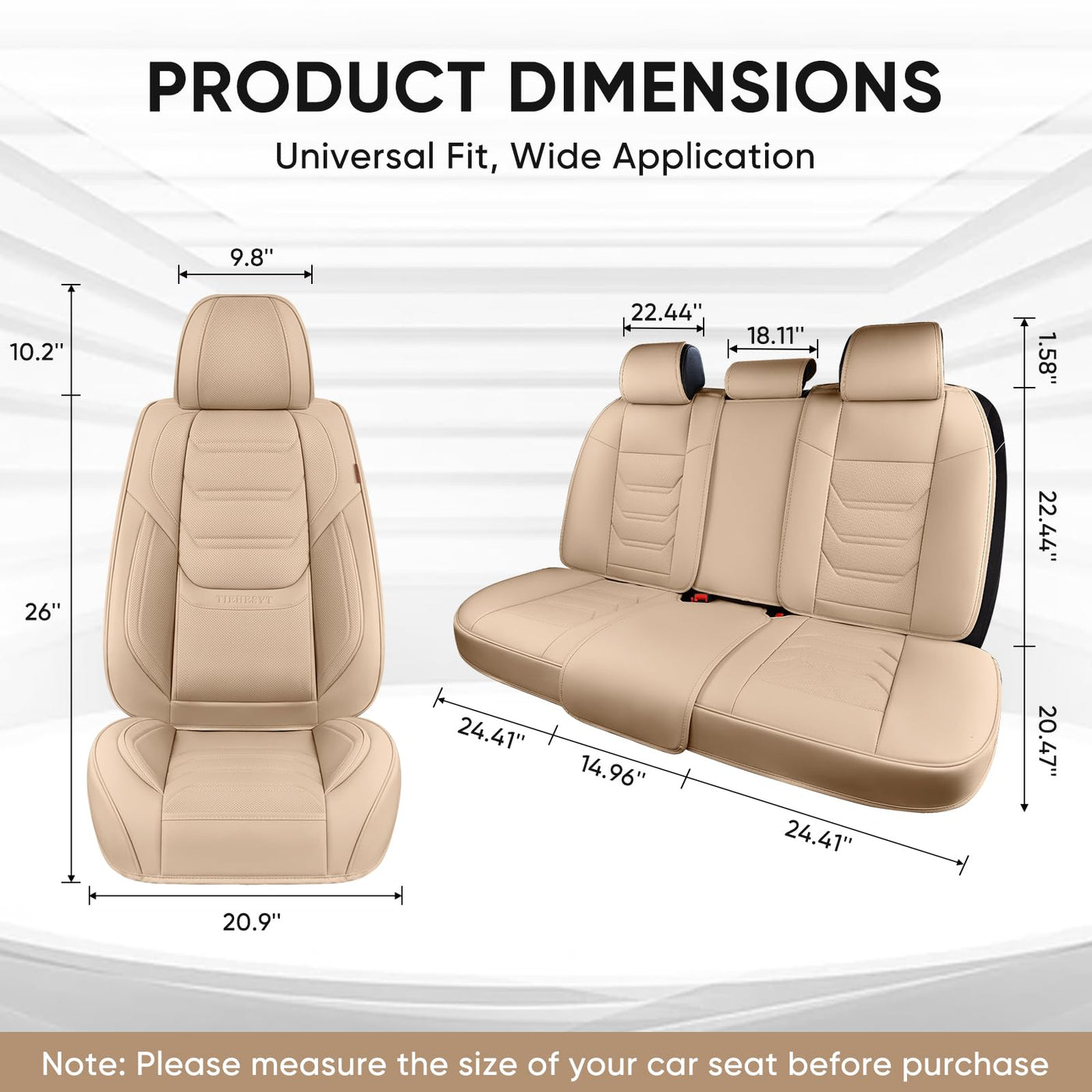 Tiehesyt Beige Car Seat Covers Full Set, Breathable Leather Automotive Front And Rear Seat Covers & Headrest, Automotive Seat Co
