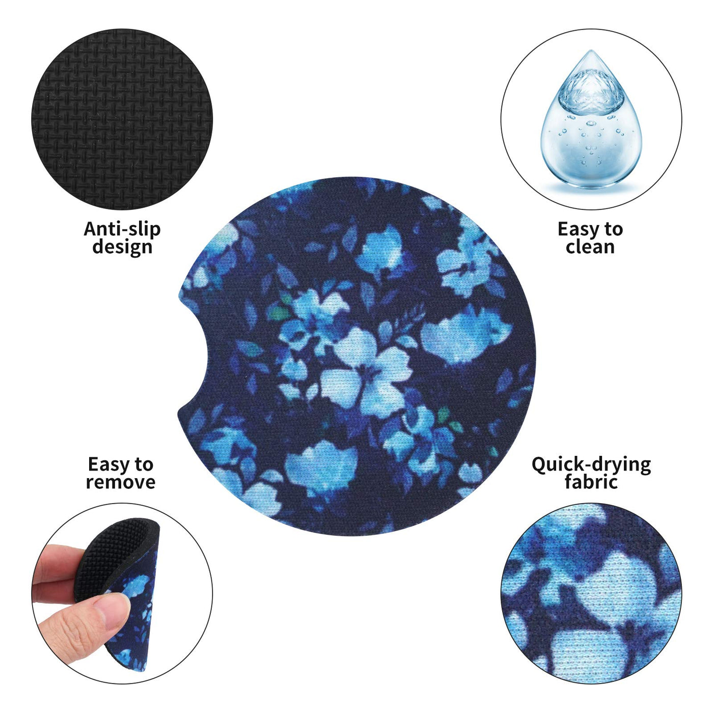 Materials: Rubber&Neoprene Size: 2.75 diameter 0.2 thick No one likes a sweaty, dirty cup holder. You know, the ones that have caked on coffee stains or sticky soda residue. No, no , no! Keep your cup holders spotless with our Tifanso Car Coasters. These absorbent Car Coasters are an innovative way to keep your vehicle cup holder dry by absorbing condensation from beverages. Our car cup holder coasters are made from sturdy Neoprene materials to withstand extreme temperatures, protect your cup holder while keeping surfaces dry, serve you for years ahead. Rubber backing prevent scratches from your cup holder and your drinks wont slide around. Specialized finger handles make easy removal and cleaning a breeze. Our tifanso orchid Print design silicone coasters fits most cars, trucks and SUVs. Also its a great way to add your own personality to your cars interior. Just pop them into the bottom of your car's cup holders it will catch the spills and drips for you. We highly recommend measuring to make sure they will fit to your liking. Due to the varying sizes of car cup holders the coaster size is designed to fit the bottom of the average drink container and not the car holder itself making them a universal fit.