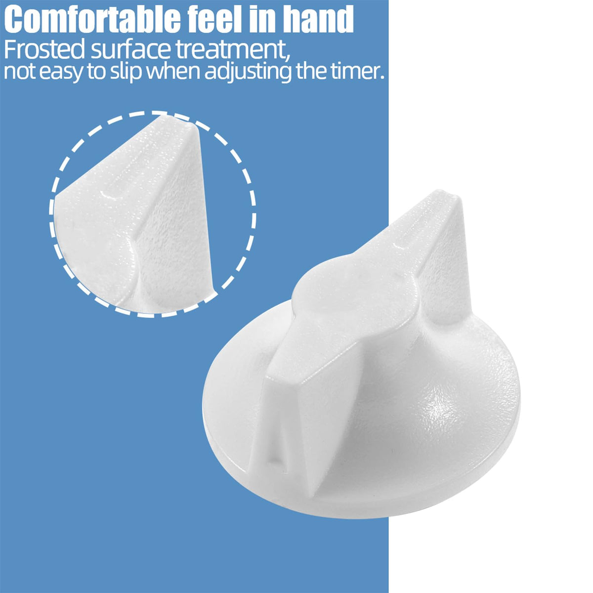 Q: How do I install the Timer Switch Knob Replacement?A: Installation is simple with the press-on knob design. Just align the D-shaped hole on the back of the knob with the corresponding shaft on the timer and press it into place. The installation process typically takes about one minute.