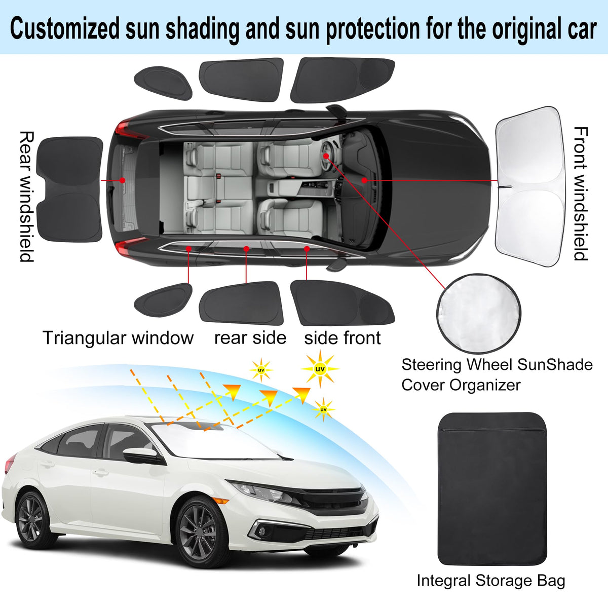 TINGLU Window Shades for Honda Civic 2016-2021 Accessories Car Side Full Windows Rear Triangular Windshield Sun Shade Sun UV Ray