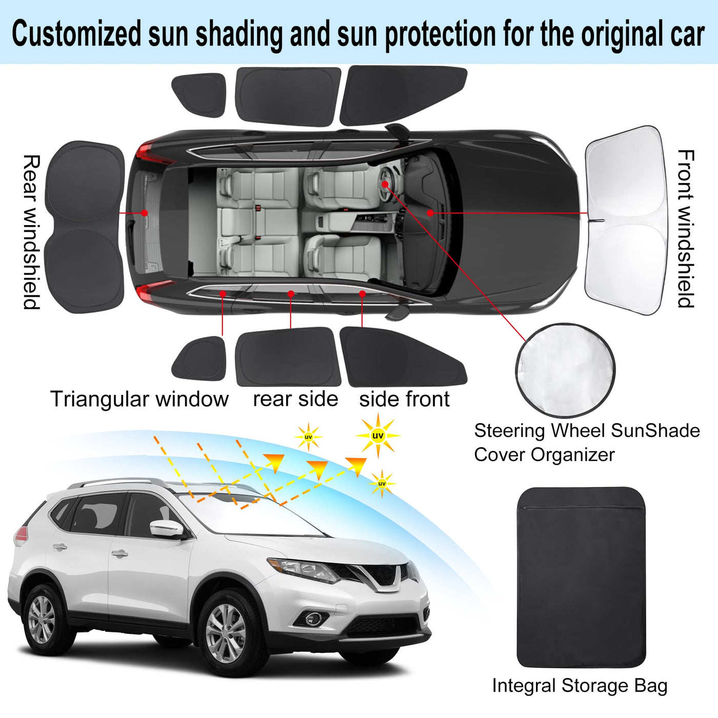 TINGLU Window Shades for Nissan Rogue 2014-2020(NOT for Rogue Sport & 2021 Rogue 3rd Gen. T33) Accessories Full Windows Rear Tri