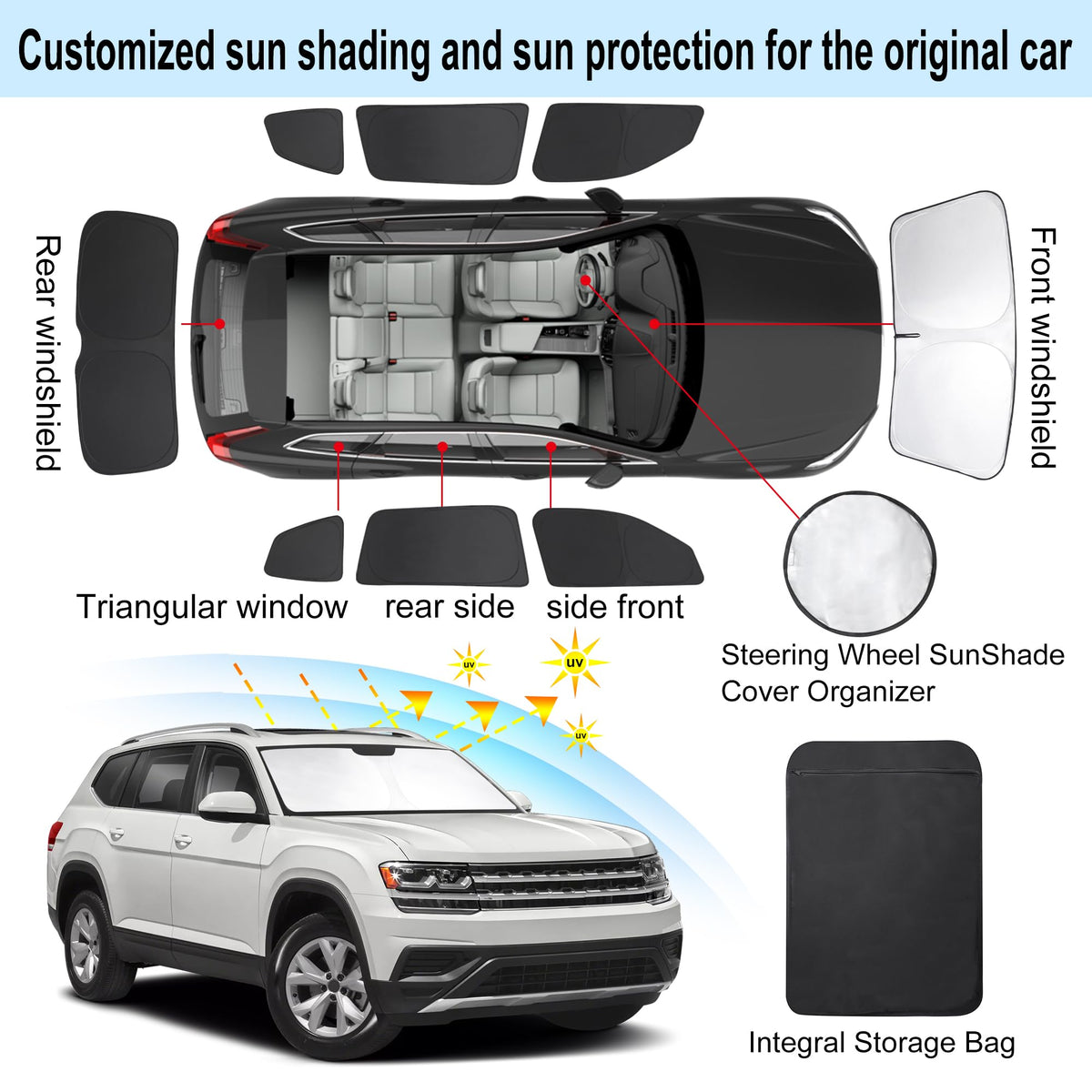 Tinglu Window Shades For Volkswagen Vw Atlas 2018-2024 2025 Accessories Car Side Full Windows Rear Triangular Windshield Sun Sha