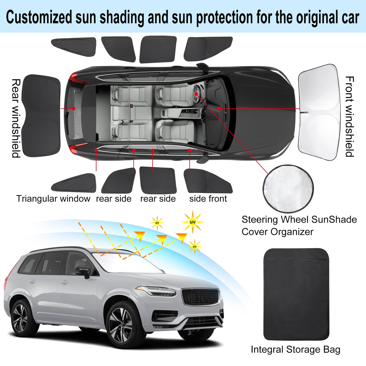 TINGLU Window Shades for Volvo XC90 2016-2024 2025 Accessories Car Side Full Windows Rear Triangular Windshield Sun Shade Sun UV