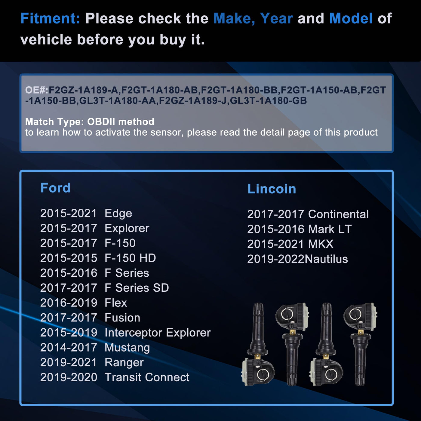 Tire Pressure Sensor 315Mhz Tpms Sensors 1Pcs Compatible With Ford F150 Edge Explorer Mus Tang Lincoln Mkt Replaces F2Gz-1A189-A