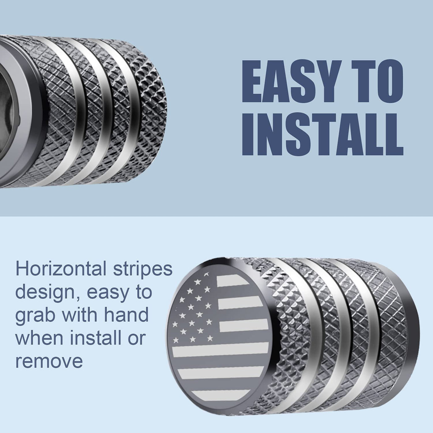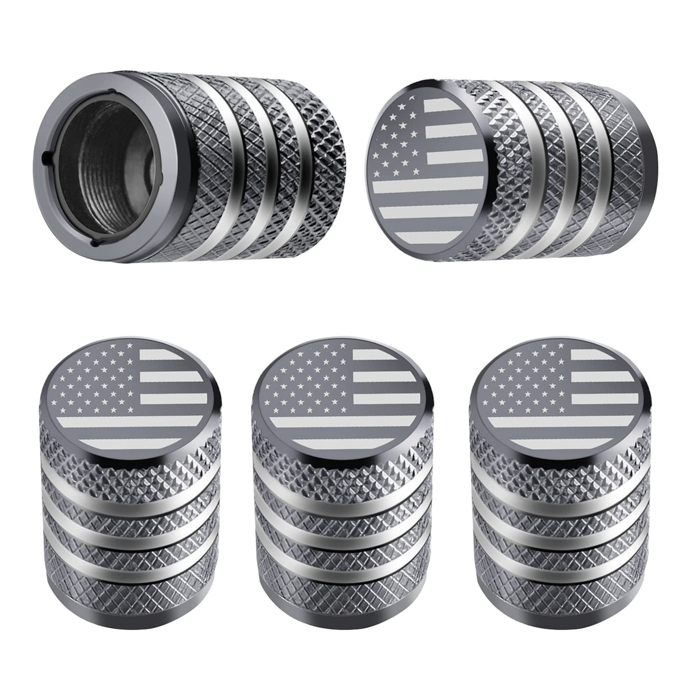Tire Valve Stem Cap Cover - (5 Pack) Tire Air Cap Metal with Plastic Liner Corrosion Resistant Leak-Proof American Flag for Car Truck Motorcycle Bike Grey
