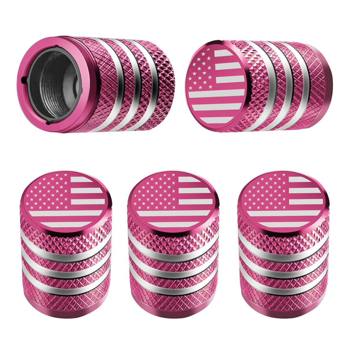 Tire Valve Stem Cap Cover - (5 Pack) Tire Air Cap Metal with Plastic Liner Corrosion Resistant Leak-Proof American Flag for Car Truck Motorcycle Bike Pink