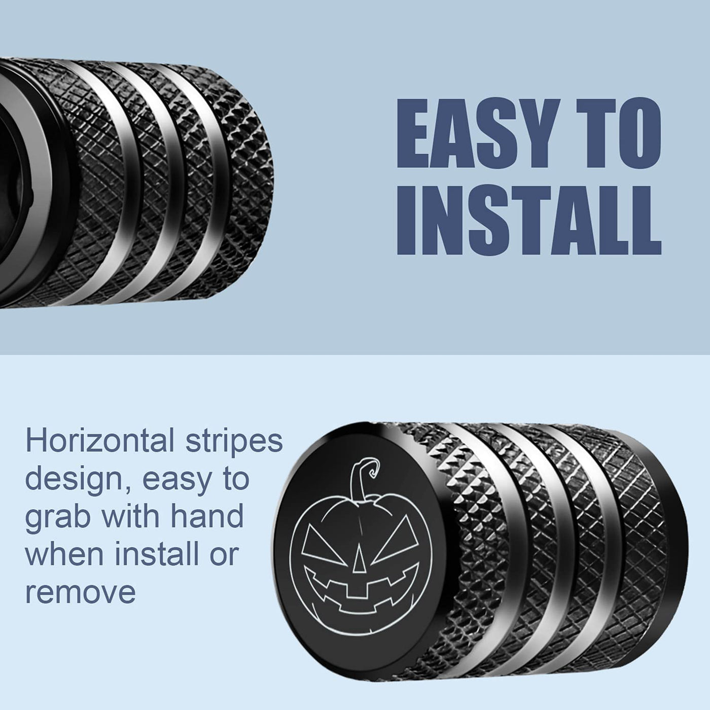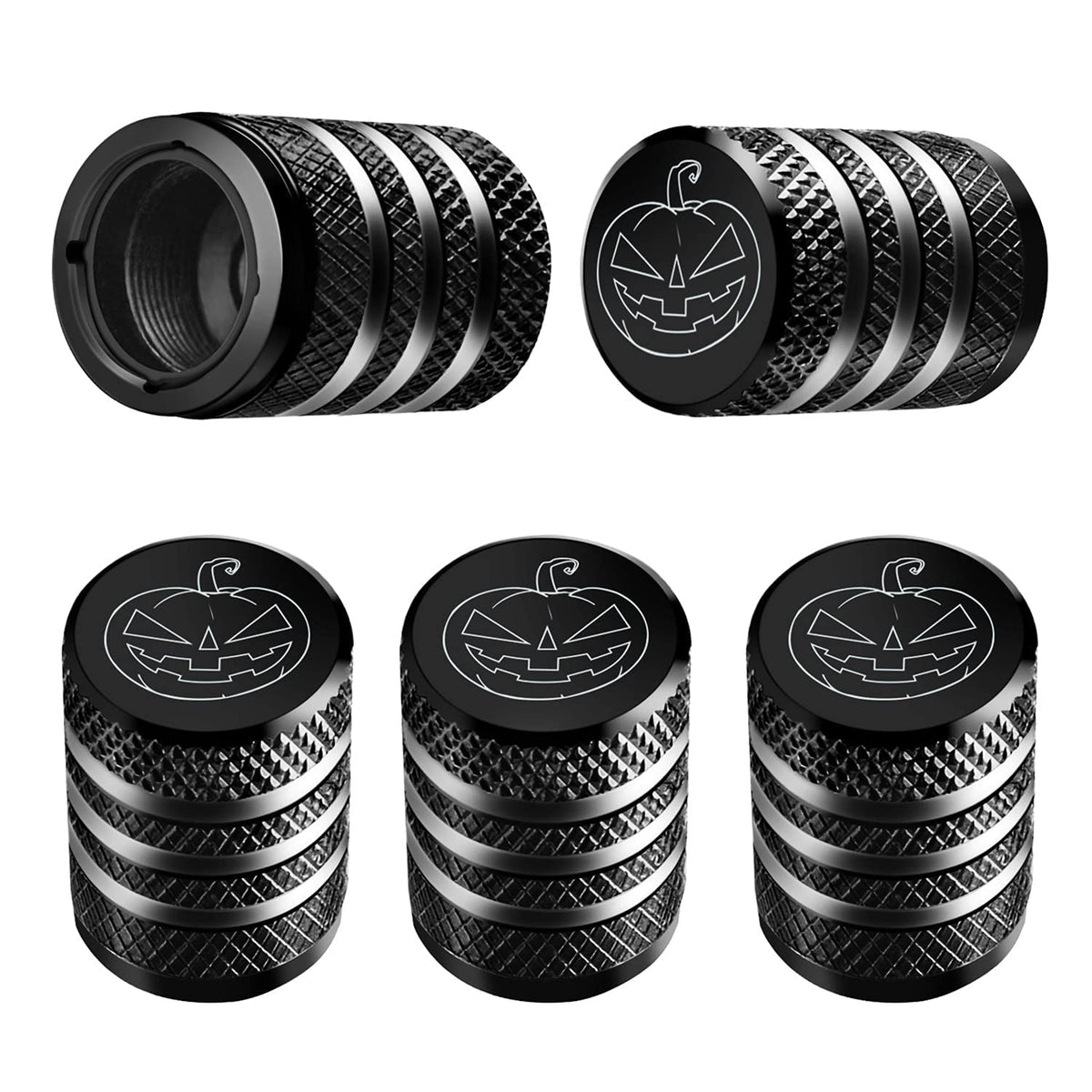 Tire Valve Stem Cap Cover - (5 Pack) Tire Air Cap Metal with Plastic Liner Corrosion Resistant Leak-Proof Halloween Pumpkin Car Decoration Accessories Black
