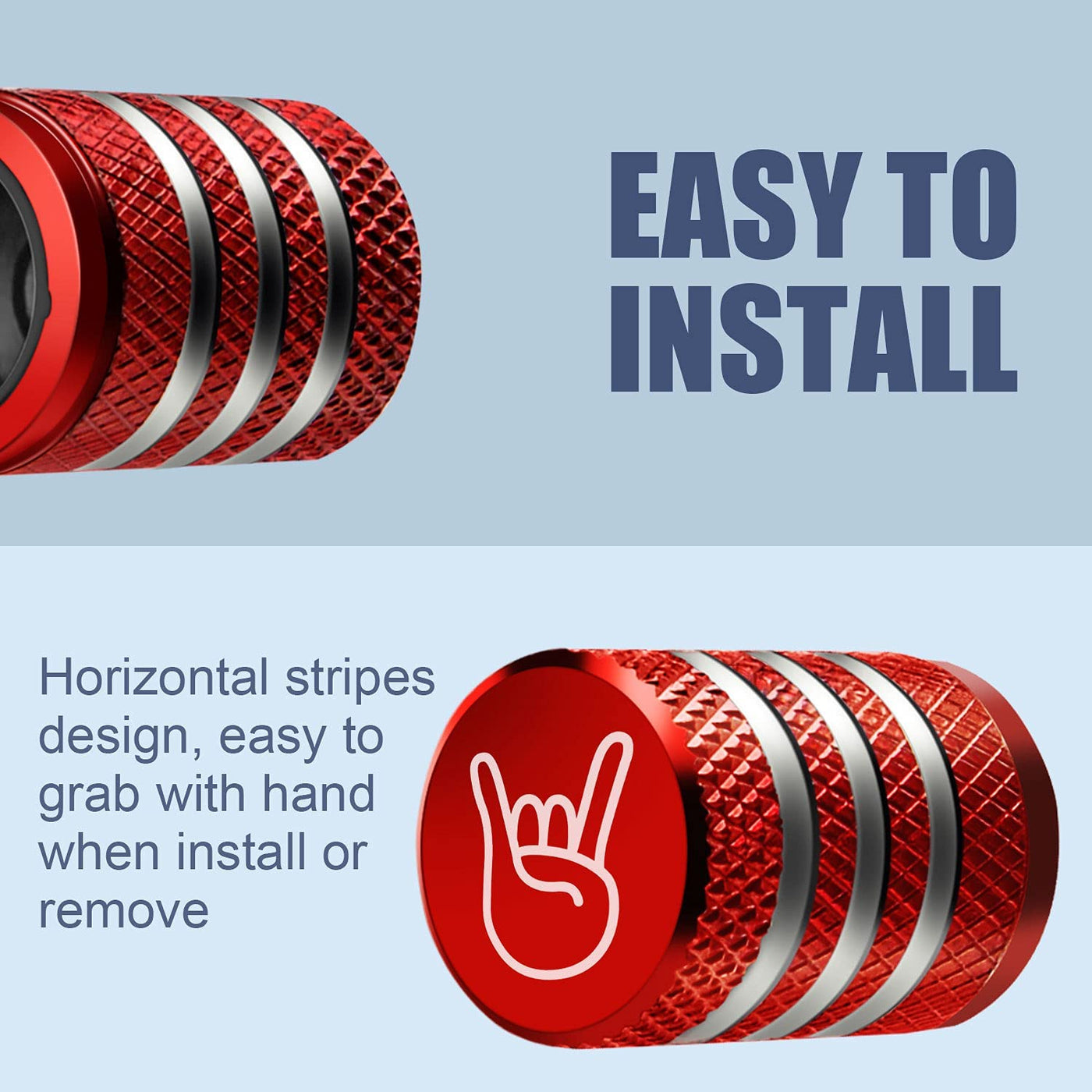 Tire Valve Stem Cap Cover - (5 Pack) Tire Air Cap Metal with Plastic Liner Corrosion Resistant Leak-Proof Rock and Roll for Car Truck Motorcycle Bike Red