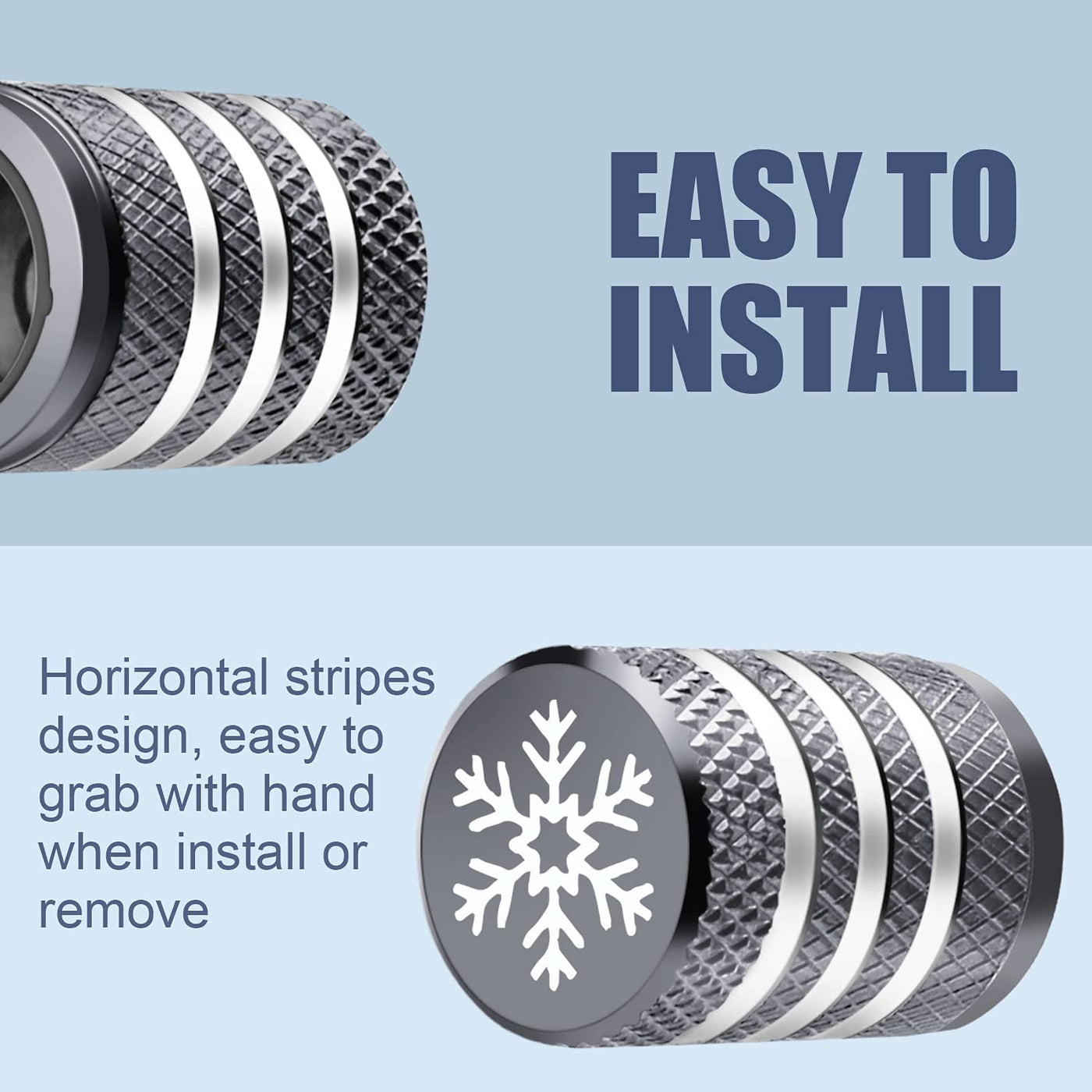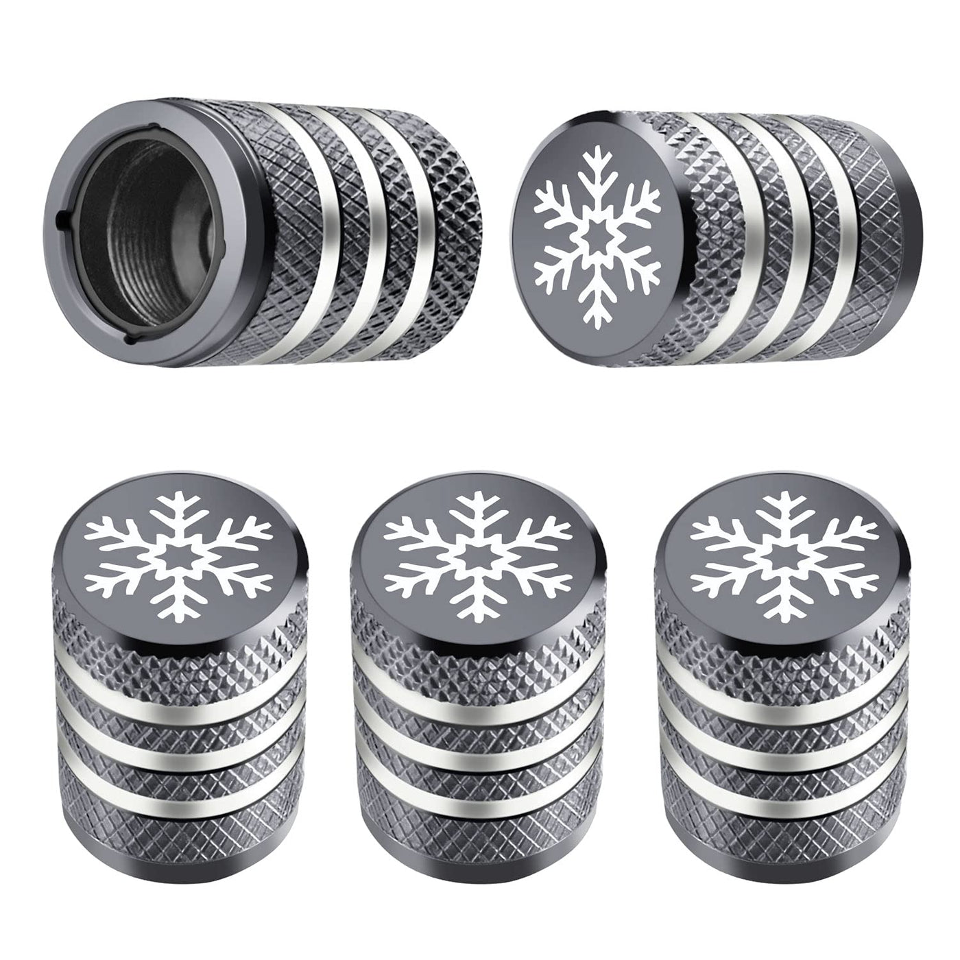 Tire Valve Stem Cap Cover - (5 Pack) Tire Air Caps Metal With Plastic Liner Corrosion Resistant Leak-Proof Snow Snowflake For Car Motorcycle Bike Grey