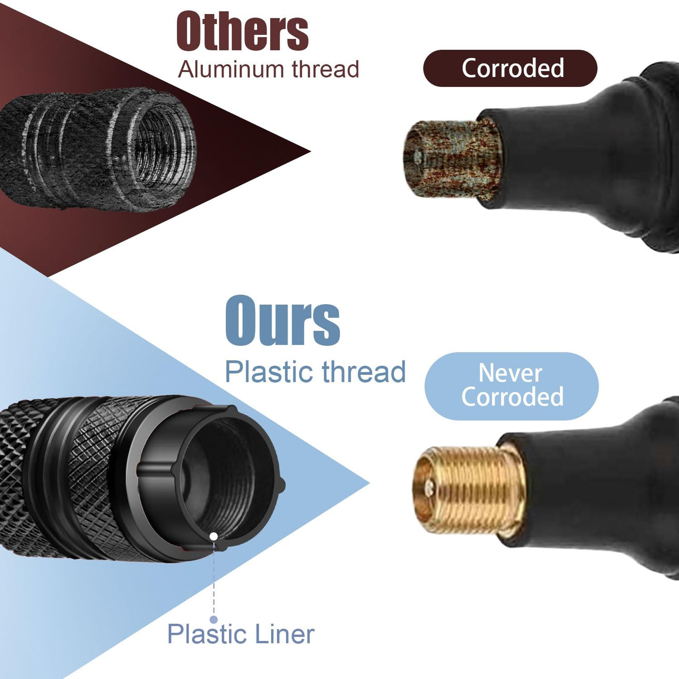 Q: Are these valve stem caps resistant to the elements?A: Absolutely! The anti-corrosion design of these valve stem caps, along with their robust anodized alloy construction, ensures they can withstand various weather conditions, keeping your tires and valve stems protected.