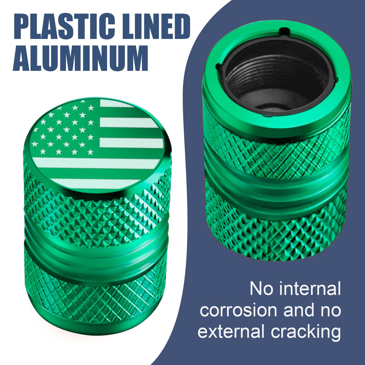 Tire Valve Stem Caps - 4 Pack Anti-Corrosion Premium Anodized Alloy Tyre Air Valve Caps American Flag For Car Suv Bike Green