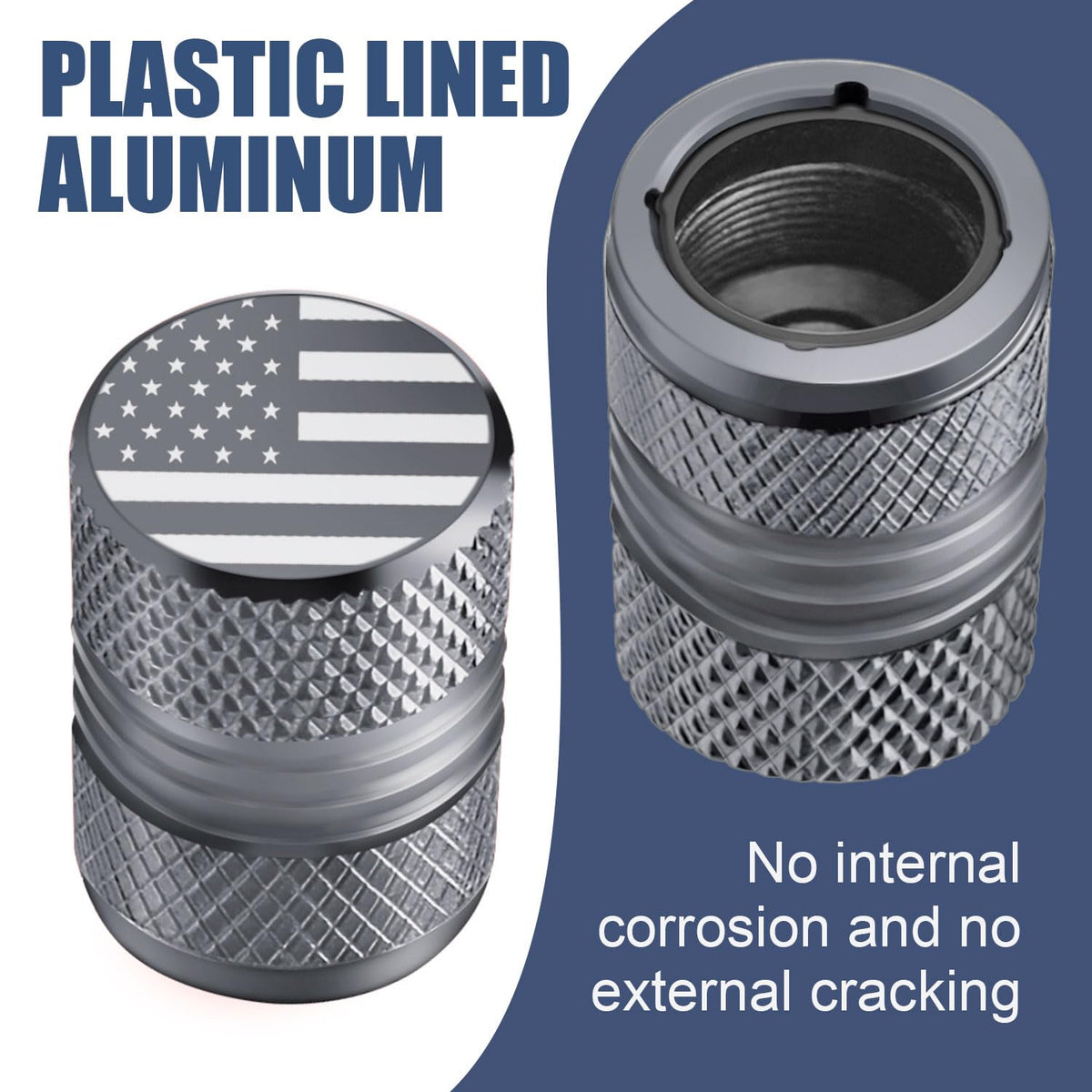 Tire Valve Stem Caps - 4 Pack Anti-Corrosion Premium Anodized Alloy Tyre Air Valve Caps American Flag For Car Suv Bike Grey