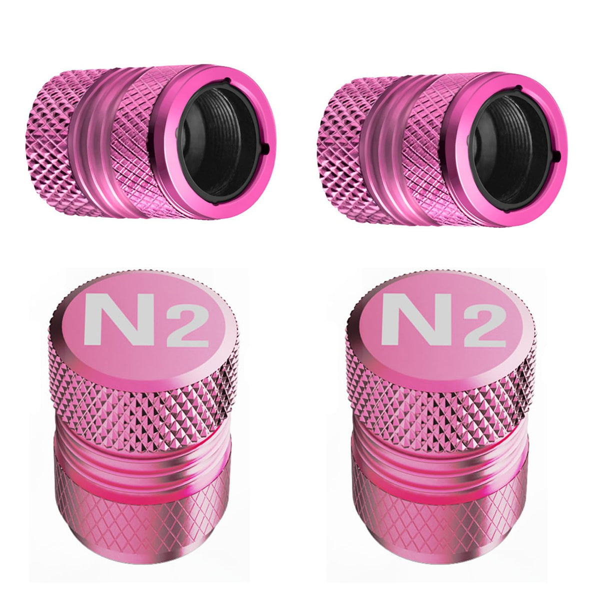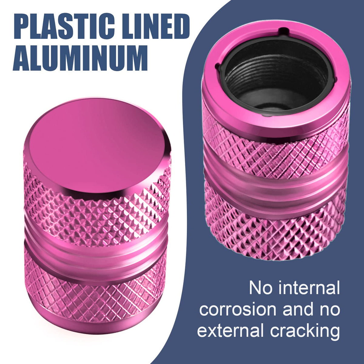 Tire Valve Stem Caps - 4 Pack Anti-Corrosion Premium Anodized Alloy Tyre Air Valve Caps N2 Nitrogen For Car Suv Bike Pink
