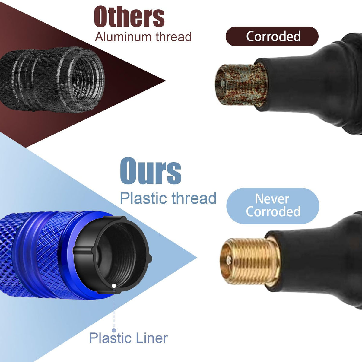 Tire Valve Stem Caps - 4 Pack Anti-Corrosion Premium Anodized Alloy Tyre Air Valve Caps Universal For Car Suv Bike Blue