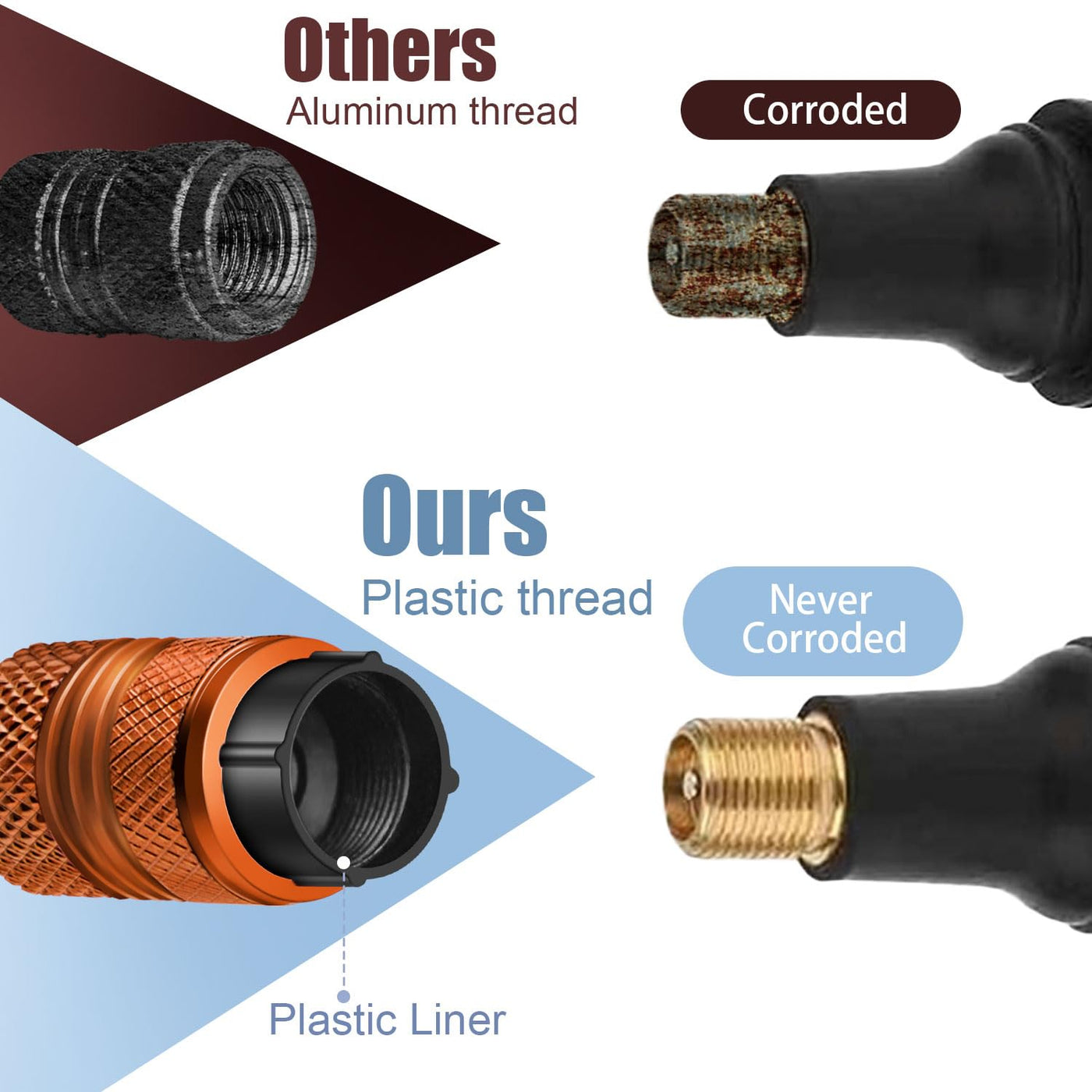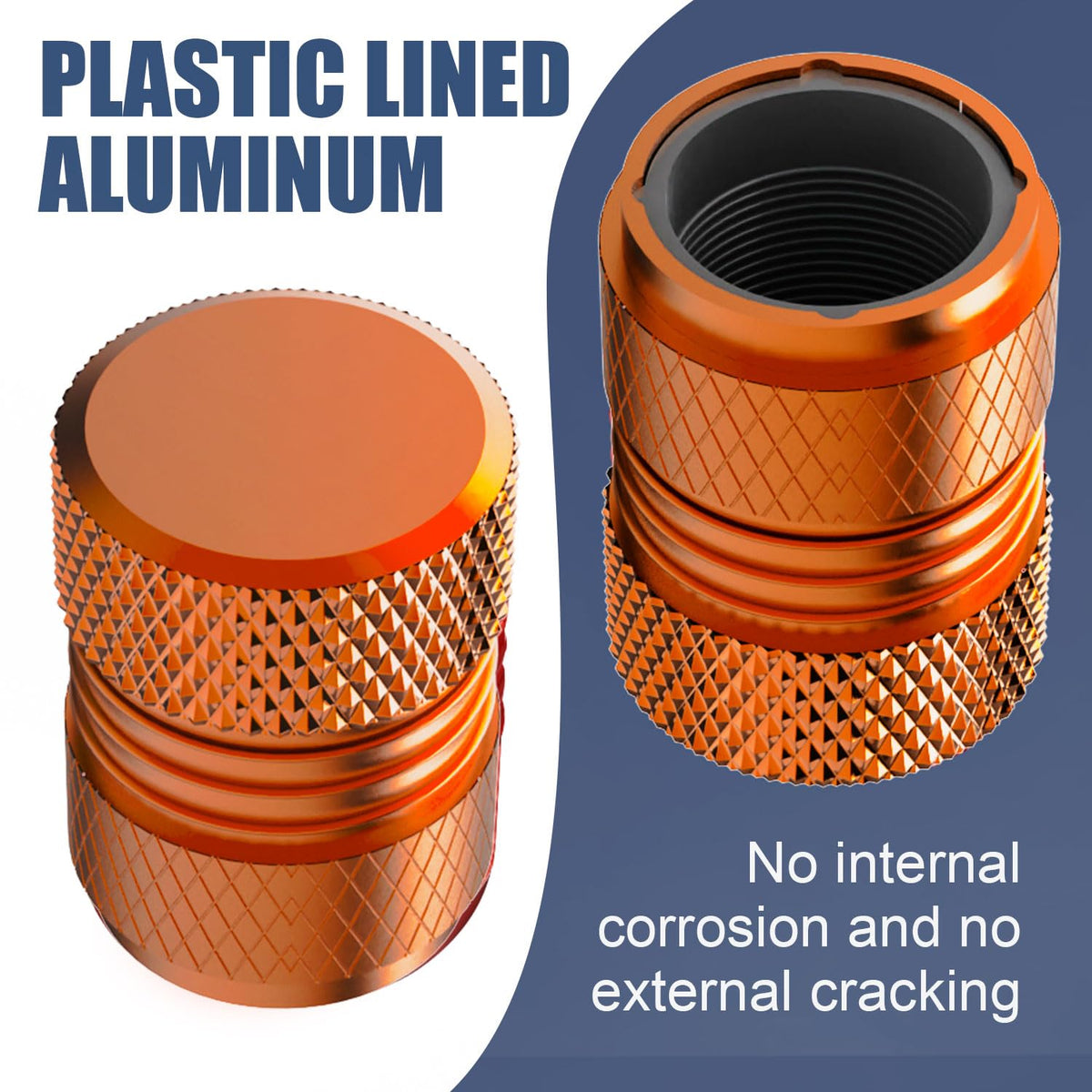 Tire Valve Stem Caps - 4 Pack Anti-Corrosion Premium Anodized Alloy Tyre Air Valve Caps Universal For Car Suv Bike Orange