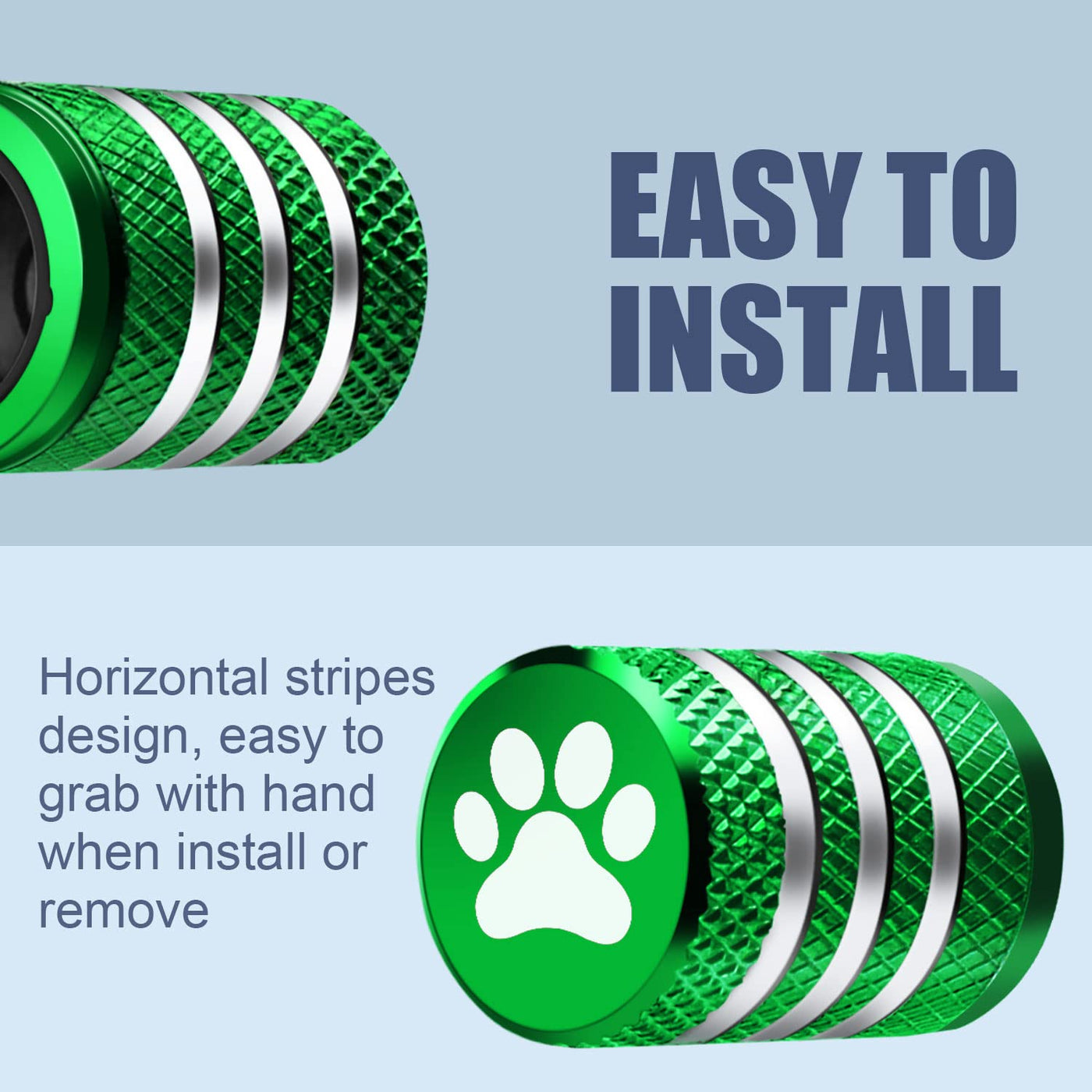 Tire Valve Stem Caps -(5 Pack) Tire Air Caps Metal With Plastic Liner Corrosion Resistant Leak-Proof Cat/Dog Paw For Car Truck M