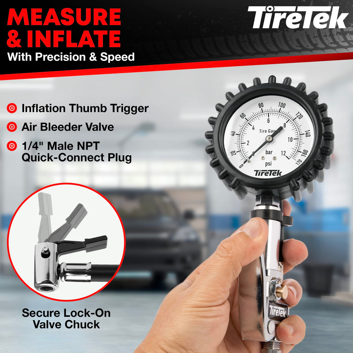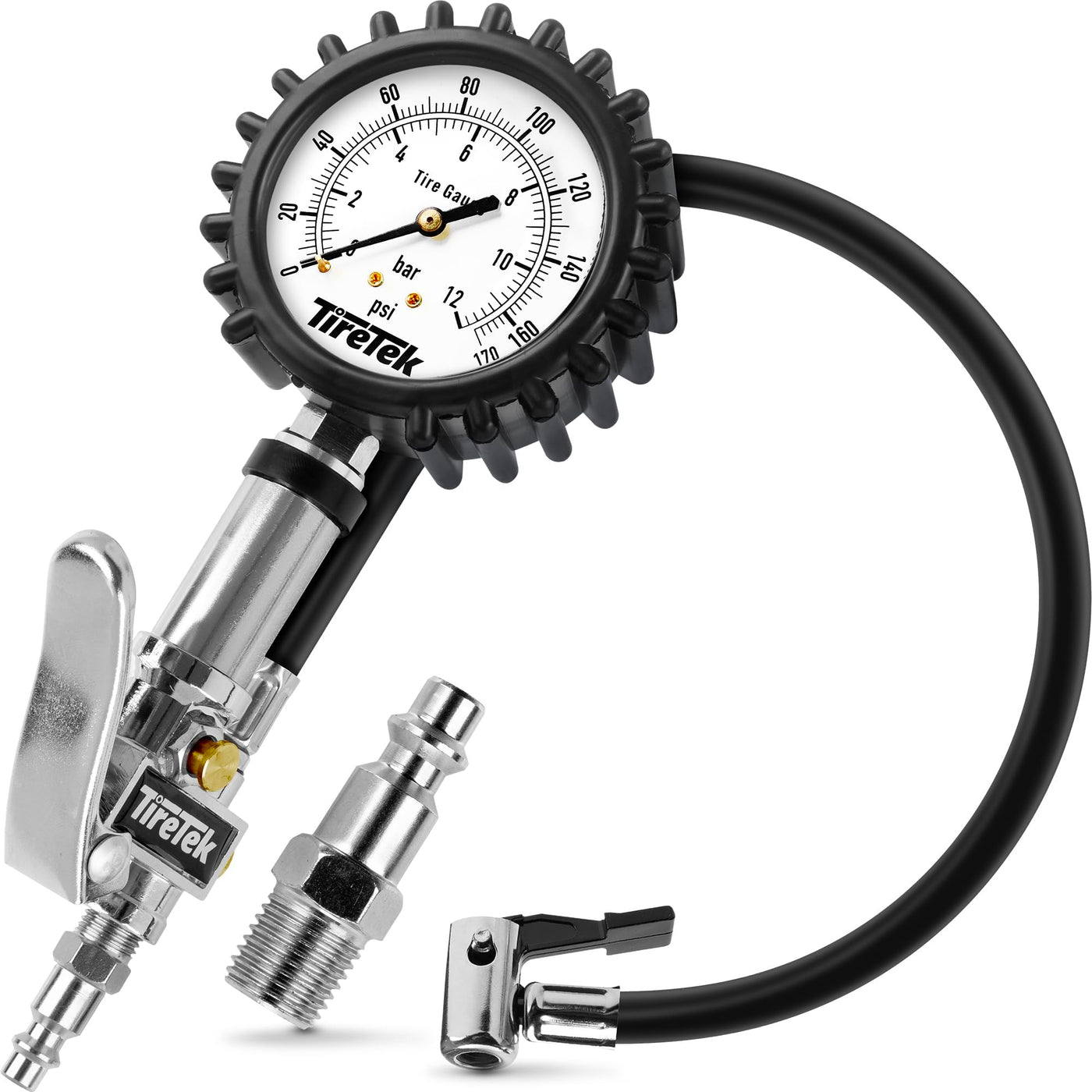 TIRETEK Tire Pressure Gauge for Cars (0-170 PSI, ANSI Certified) Professional Inflator with Secure Air Chuck, Tire Gauge for Pressure, Air Compressor Attachment Inflator Nozzle Low PSI Checker Tester
