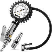 Tire Pressure Gauge with Inflator (170 PSI) - Air Pressure Gauge for Tires - Air Compressor Tire Inflator Attachment – Nozzle Tire Gauge Air Chuck, tire inflator nozzle, 90 degree air chuck, tire attachment for air compressor, 90 degree tire inflator GPT Maintain your vehicle's tire health with the TireTek Tire Pressure Gauge for Cars. Crafted for precision and durability, this professional tire inflator ensures you have accurate readings up to 170 PSI, vital for your car's performance and safety. Featuring a secure air chuck, it's a must-have tool for effortless tire pressure maintenance. Compatible with numerous air compressor attachments, this tire gauge is a versatile addition to your automotive toolkit. The digital display provides clear, immediate results, making it a superior choice for those who value reliability and ease. As an essential part of air pressure gauge systems, it also serves as a tire inflator nozzle, streamlining the inflation process. Whether for daily use or specialized needs like offroad adventures, TireTek's gauge is the dependable choice for all your tire pressure needs. Perfect for the savvy car owner who demands the best in air tools and compressor accessories.