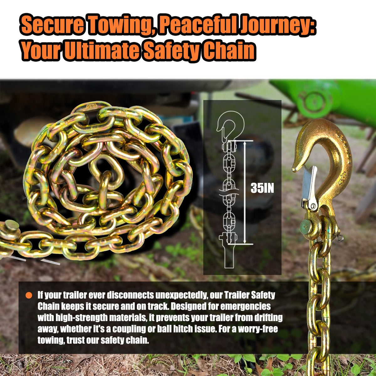 TKK 2-Pack Trailer Safety Chain - 35 Inch Chain with 5/16'' Clevis Snap Hook and Retainer | 21,000 lbs Break Strength | Secure T