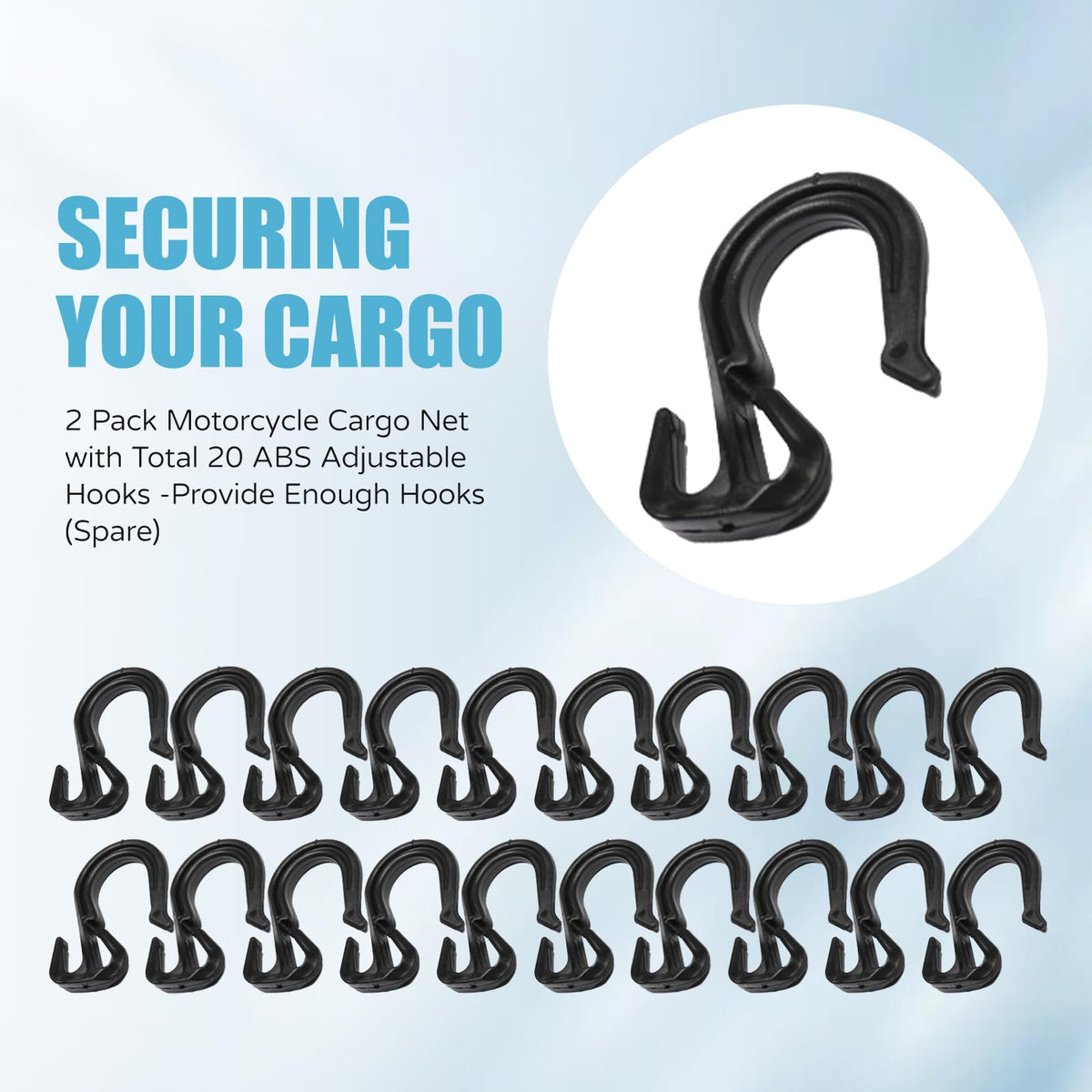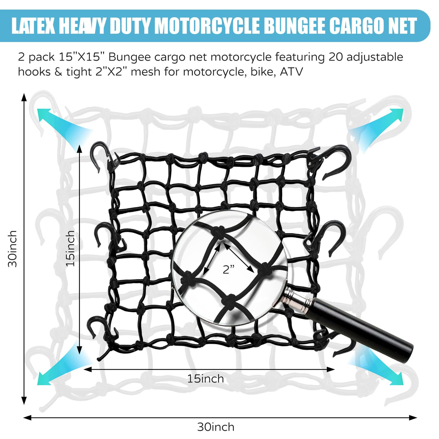 Tkkeuep 2 Pack 15''X15'' Motorcycle Cargo Net Stretches To 30''X30'', 2''X2'' Tight Mesh,Total 20 Hooks, Cargo Nets For Motorcyc